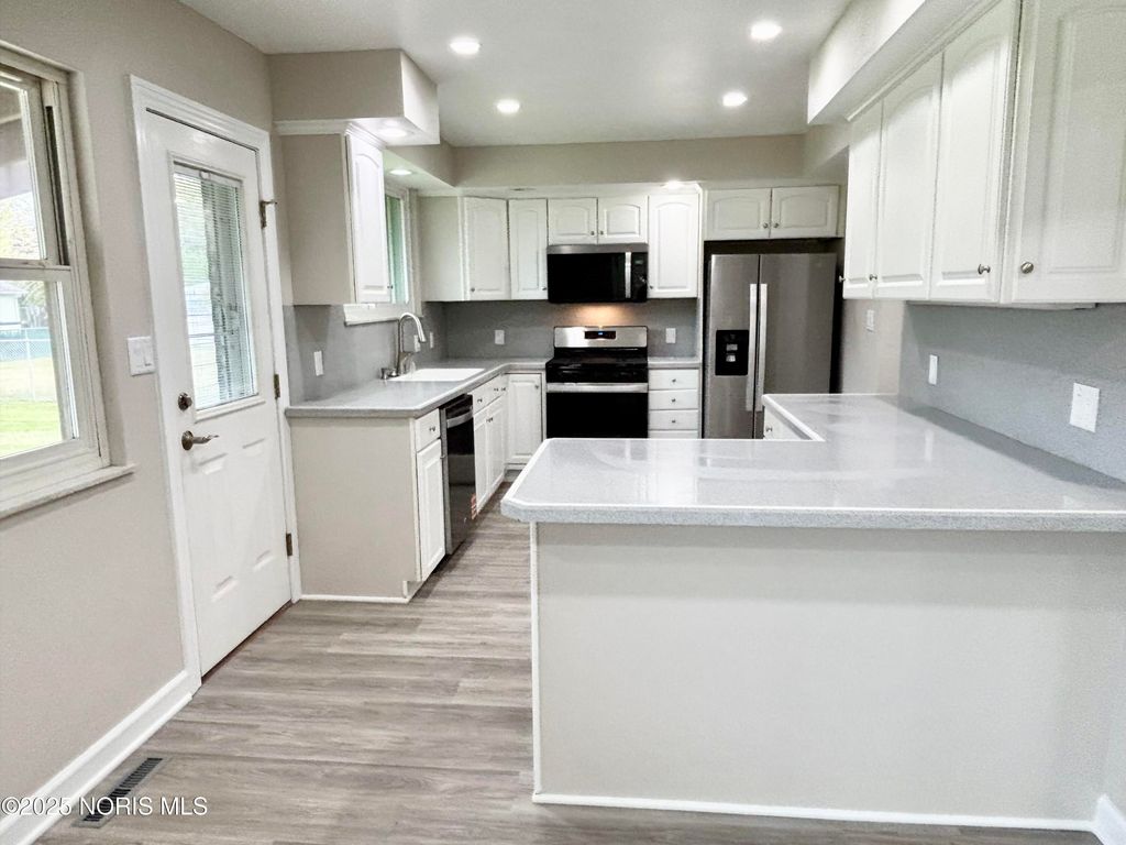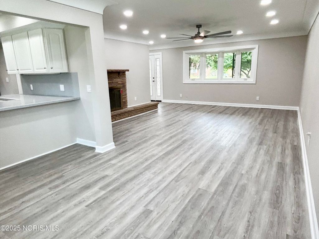 Here is a gorgeous remodel! This one-story brick home will impress you inside & out! Convenient & quiet location! The floor plan is open & the large windows provide so much natural light! Move-in ready with new vinyl flooring, recessed lights, doors, trim, & paint throughout! Corain counters, new stainless steel appliances, pantry, & peninsula seating in the spacious kitchen! The full bath remodel is stunning with new vanity & LED mirror, plus new shower surround & tub! In the full basement, there is so much extra living space with a rec room, dry bar, & new half bath! Even the "unfinished" basement space is usable with freshly painted walls & a black sprayed ceiling! All the inside has to offer pairs so well with the amazing yard! .41-acres. Lovely landscaping. Mature trees. The fenced backyard boasts a 10x24 inground pool & concrete patio with pergola. There's even a meditative hut to enjoy this peaceful backyard! Replacement vinyl windows. Glassblock windows in basement. New roof. This is one amazing home & property. Set your showing today!
