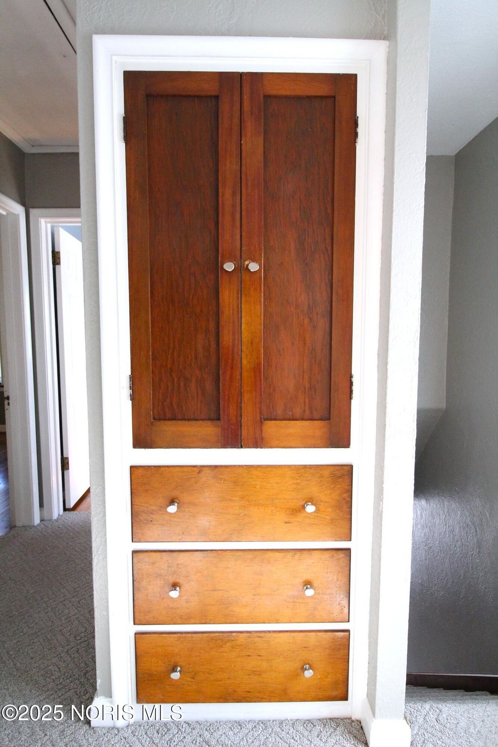 Updated 3 Bed 1.5 Bath West Toledo Charmer. Full basement Partially finished. Large Primary BR w many windows & 10x7 walk-in closet. Big Eat-in Kit (stainless appliances included, plus washer and dryer) Formal DR w glass slider to deck & patio. All BR's have mounted TV's incl. Lot's of character w HW floors under carpet throughout, Archways, built-ins, Cove ceilings, wrought iron hand rails, Glass handled Wood doors. Spacious LR (new carpet) w Fireplace. Newer HVAC & HWT (5 years) Vinyl Replacement Windows on 2nd floor (8 years) Privacy fenced yard, 2.5 Car garage. 1 Year home Warranty incl!