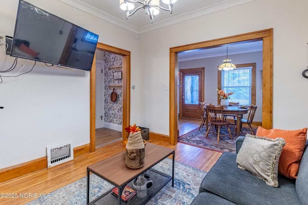 Full of charm and character, this 3-bed, 1.5-bath home welcomes you with a spacious front porch perfect for relaxing evenings. Inside, cove ceilings, gleaming hardwood floors, and a cozy fireplace create a warm, inviting atmosphere. The kitchen and dining area flow nicely for everyday living, while a convenient half bath is located on the main floor. Upstairs, a finished walk-up attic"”accessible from the third bedroom"”adds flexible living space, and the second bedroom opens to a unique air-deck for a breath of fresh air. The basement offers endless potential with some improvements already started, including a bar and a bright storage room beneath the front porch complete with epoxy flooring. A fenced backyard adds privacy and outdoor enjoyment. Timeless charm meets opportunity in this well-kept home ready for its next chapter.