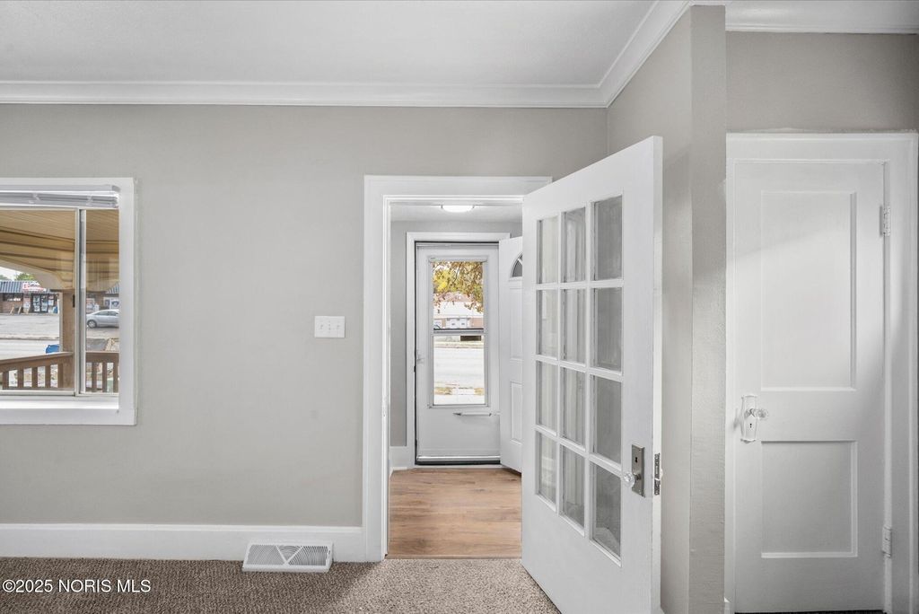 Step inside this beautifully updated two-story home offering over 1,400 sq. ft. of living space plus a clean, freshly painted full basement. Built in 1912, this home blends classic character with modern upgrades throughout. The main floor features a spacious living room and a formal dining area with a built-in buffet, cove ceilings, and ceiling fans. Off the dining room, sliding glass doors open to a wood deck overlooking the backyard"”perfect for relaxing or entertaining. The large, fully renovated kitchen showcases granite countertops, new cabinets, luxury vinyl plank flooring, and updated fixtures, providing plenty of storage and style. Upstairs, you'll find three bedrooms and a full bathroom, all with brand-new carpet and updated doors. The home offers easy maintenance with vinyl siding, vinyl windows, and a newer roof. Additional highlights include a detached two-car garage, a secondary electrical panel, and a covered front porch that adds to its curb appeal. With low annual taxes of just $494, this home provides an affordable opportunity for first-time buyers looking to keep costs low or investors seeking a solid property with strong rental potential. Move-in ready and full of updates"”this one is ready to go!