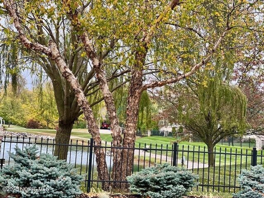 Lovely updated villa on beautiful lot. Features high ceilings & open floor plan. Cooks kitchen w/lots of rich wood cabinetry & 2 refrigerators & extra freezer. Living room & eat in area overlook newer patio & pond. Spacious sun room overlooks koi pond. Newer dishwasher, stove & garbage disposal. Primary bedroom with fireplace & newer remote window blinds, primary bath with newer vanity. Newer leaf guard on eves trough. Large basement with egress window & plumbed for bathroom. One of a kind, with lots of space & updates & park like setting.