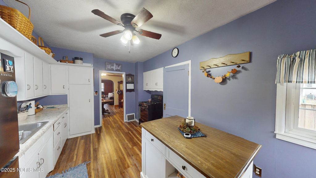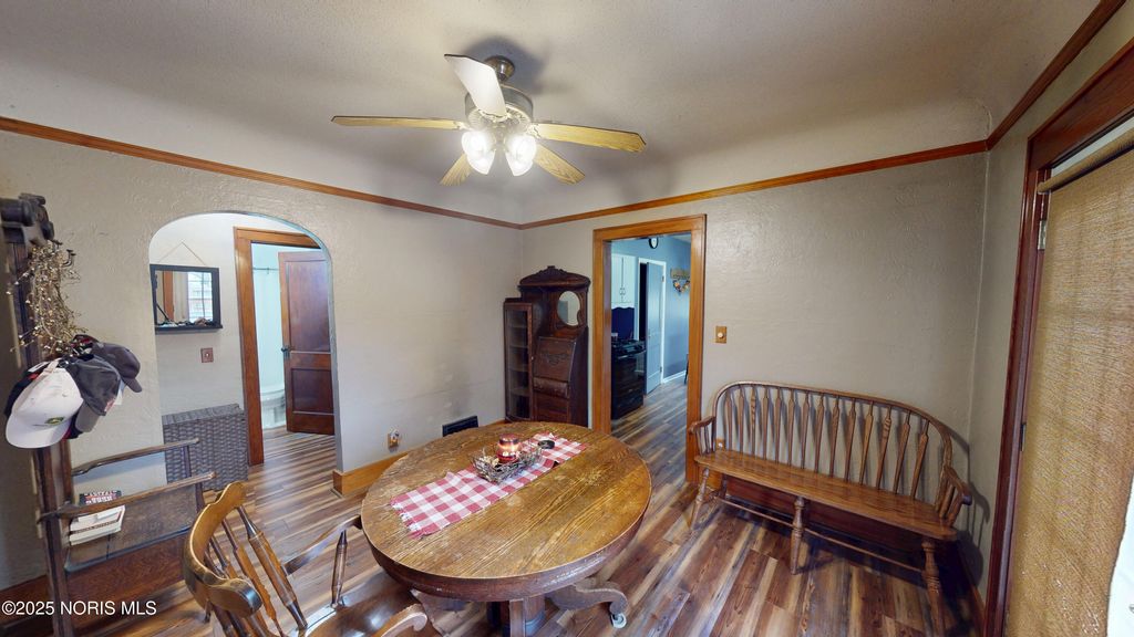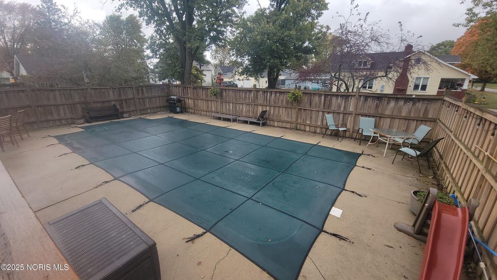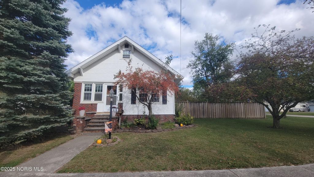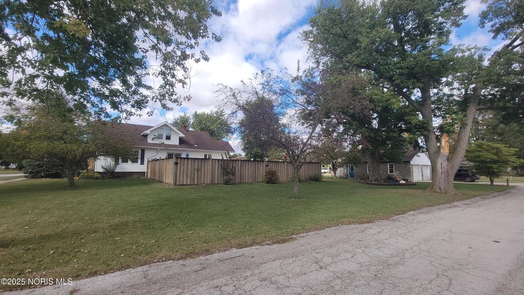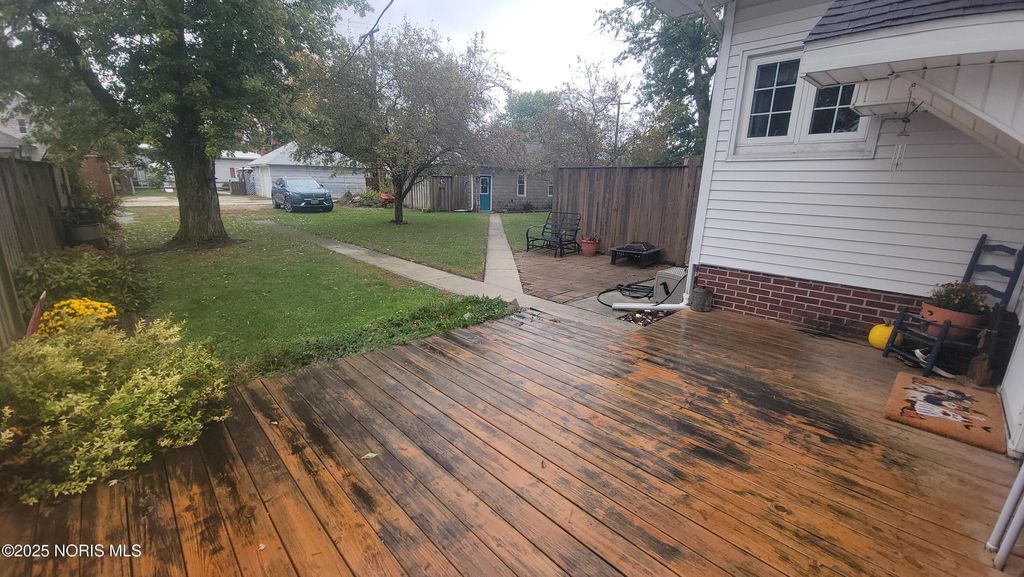 CHARMING CENTURY-OLD 3-BEDROOM; 2-BATH ON DOUBLE LOT WITH IN-GROUND POOL! Step into timeless character & modern comfort with this beautifully maintained 1.5 story home on a spacious 100'x150' corner lot! Home offers versatile living w/open floorplan. Laminate 2022 or hardwood flrng on main floor. Enjoy relaxing mornings in the enclosed front porch & cozy evenings in the inviting living spaces. LR w/plaster walls & cove ceiling-freshly painted 2025! Formal DR w/French Doors to wooden deck. Convenient eat-in, renovated kitchen w/center island & appliances stay! Main flr bath renovated 2023 w/step-in shower, comfort-height commode, sink/vanity, flrng & more! 2 bdrms on main flr-one is a walk-thru to upstairs suite & currently being used as an office/nursery. Entire 2nd flr is a private retreat-very large bdrm w/private bath & Jacuzzi bathtub! Ceiling painted 2025 & lots of storage in the knee-walls! Basement w/laundry hookups, utility sink & shower! Outside, the fenced backyard oasis includes a 16x32 in-ground pool for summer fun; large side yard for volleyball, corn-hole & games! 2nd wooden deck by back door. Detached 2-car garage w/workshop & storage area. Parking is easy on concrete drive or additional parking area off alley! With it's classic charm, updates & thoughtful floor plan, this home blends old-world workmanship with today's sought-after modern conveniences!