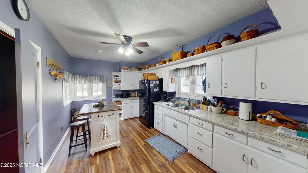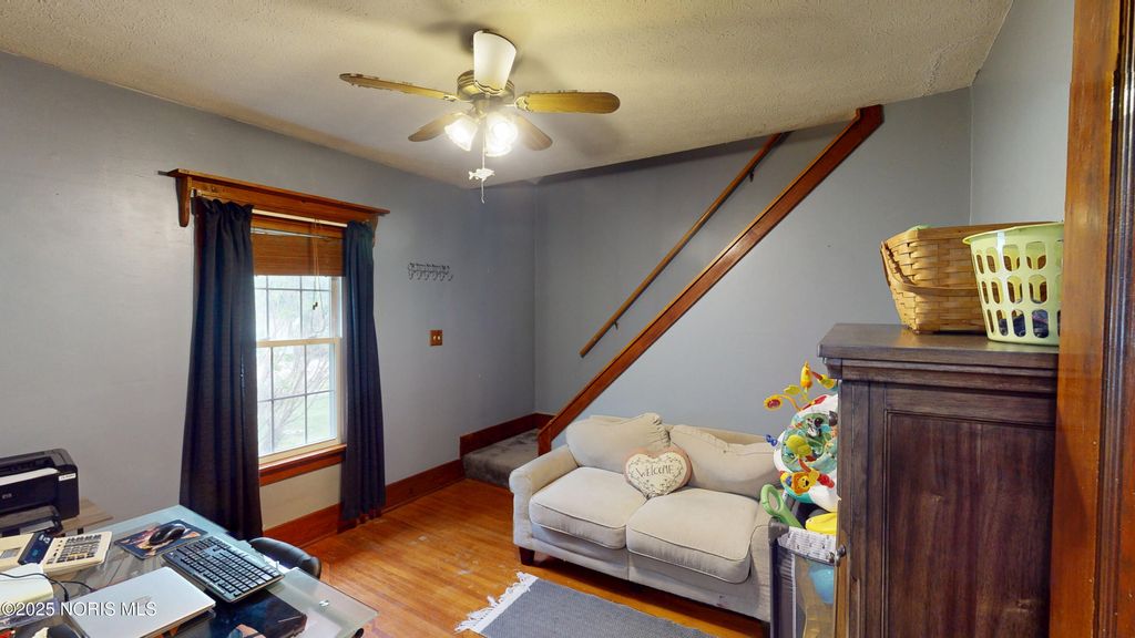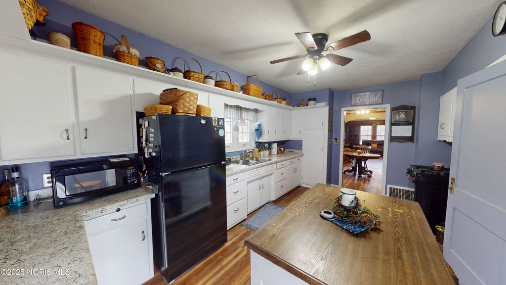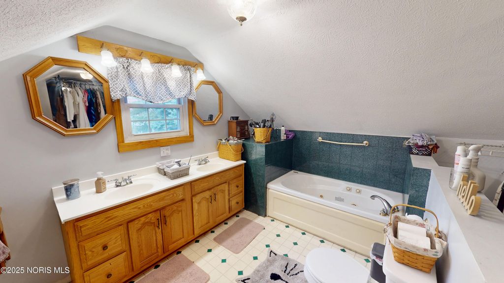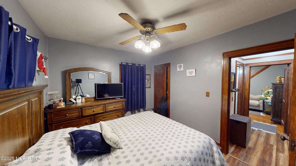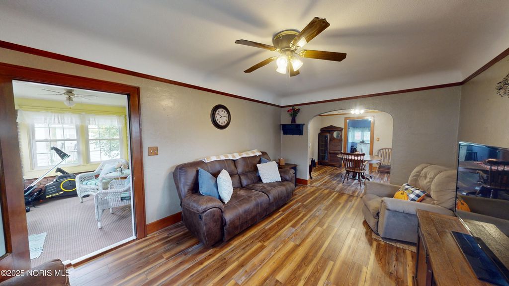 CHARMING CENTURY-OLD 3-BEDROOM; 2-BATH ON DOUBLE LOT WITH IN-GROUND POOL! Step into timeless character & modern comfort with this beautifully maintained 1.5 story home on a spacious 100'x150' corner lot! Home offers versatile living w/open floorplan. Laminate 2022 or hardwood flrng on main floor. Enjoy relaxing mornings in the enclosed front porch & cozy evenings in the inviting living spaces. LR w/plaster walls & cove ceiling-freshly painted 2025! Formal DR w/French Doors to wooden deck. Convenient eat-in, renovated kitchen w/center island & appliances stay! Main flr bath renovated 2023 w/step-in shower, comfort-height commode, sink/vanity, flrng & more! 2 bdrms on main flr-one is a walk-thru to upstairs suite & currently being used as an office/nursery. Entire 2nd flr is a private retreat-very large bdrm w/private bath & Jacuzzi bathtub! Ceiling painted 2025 & lots of storage in the knee-walls! Basement w/laundry hookups, utility sink & shower! Outside, the fenced backyard oasis includes a 16x32 in-ground pool for summer fun; large side yard for volleyball, corn-hole & games! 2nd wooden deck by back door. Detached 2-car garage w/workshop & storage area. Parking is easy on concrete drive or additional parking area off alley! With it's classic charm, updates & thoughtful floor plan, this home blends old-world workmanship with today's sought-after modern conveniences!