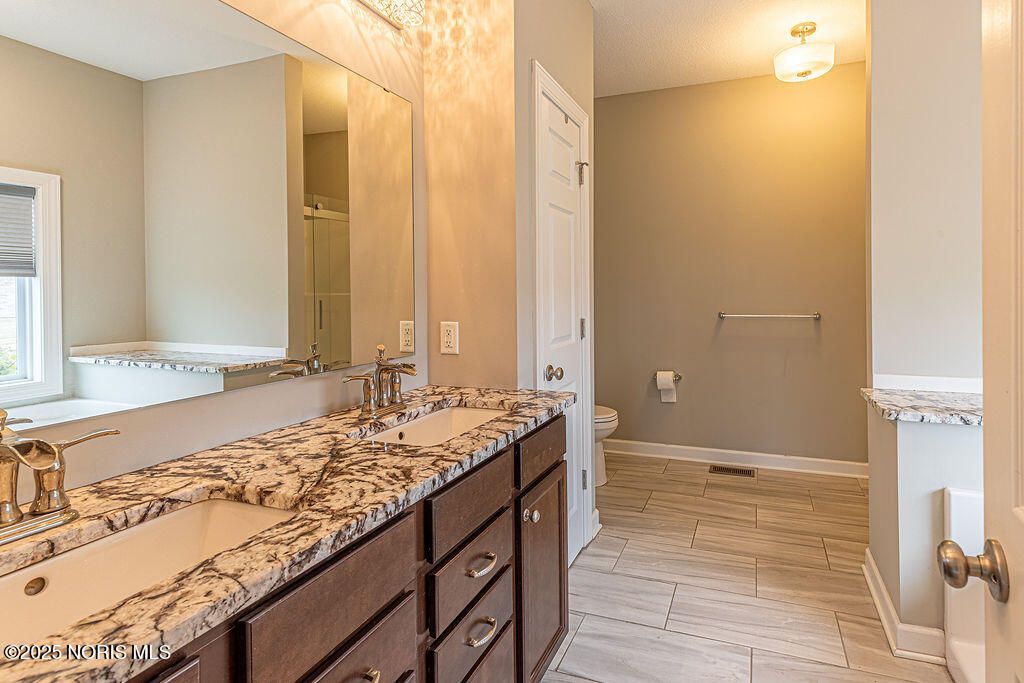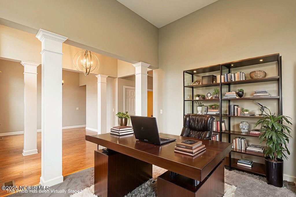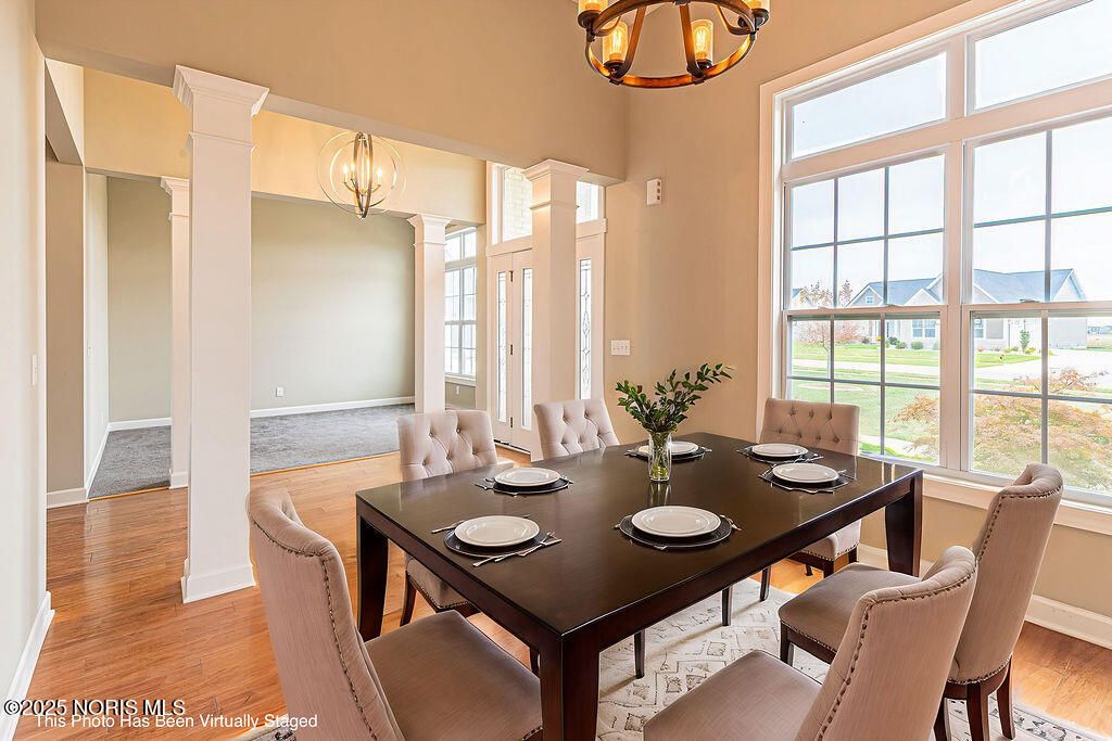 Welcome to River Bend Lakes, where elegance meets comfort and nature surrounds you. Nestled within the highly sought-after Anthony Wayne School District, this stunning 4-bedroom, 3-bath ranch offers 2,498 sq. ft. of thoughtfully designed living space, perfectly blending modern luxury with serene waterfront charm. Step inside to an open-concept layout bathed in natural light, showcasing timeless finishes and graceful flow throughout. The primary suite is a private sanctuary, featuring an expansive walk-in closet, dual vanities, and a spa-inspired jetted tub for ultimate relaxation. A well-appointed home office provides a peaceful and productive workspace, while the inviting sunroom offers panoramic views of the water, creating a tranquil backdrop to start or end your day. Step outside to the spacious concrete patio, the perfect setting for entertaining or enjoying quiet evenings surrounded by nature. The full basement offers endless possibilities, whether you envision a high-end entertainment area, fitness studio, or additional living space. With scenic views and close proximity to the river, this home delivers a rare combination of luxury, comfort, and natural beauty in one of the area's most desirable neighborhoods.
