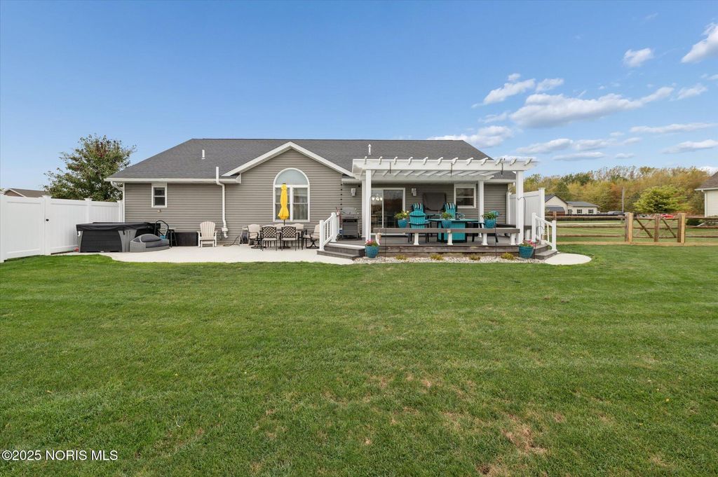 Elegant 3-bedroom, 2-bath home perfectly situated on a spacious corner lot. Enjoy effortless single-level living with an open floor plan. The kitchen features stainless steel appliances, a brand-new refrigerator, large island, and built-in desk area ideal for remote work. Step outside to a fully fenced backyard with a covered pergola, extended patio, hot tub, and beautifully landscaped grounds - perfect for entertaining or relaxing while enjoying stunning sunrise and sunset views. A MUST SEE!!