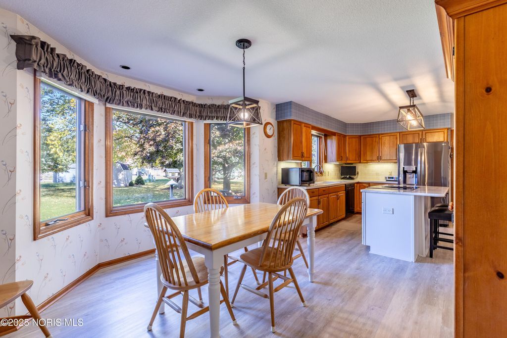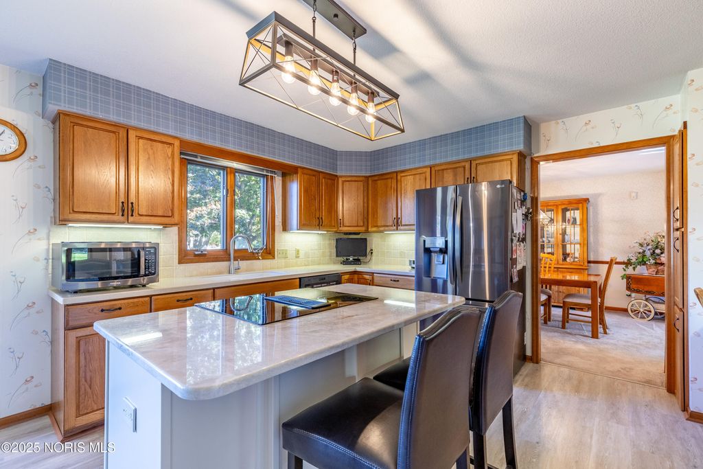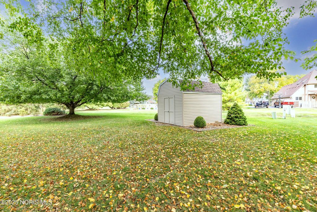 Amazing curb appeal with this HEATHERGLEN HOME situated on an oversized estate style lot. Beautiful, well maintained original owner property is waiting for you! Inviting front porch welcomes you with pristine walkways and lush landscaping Great open concept kitchen and family room design is perfect for entertaining. Updated kitchen with Quartzite center island featuring black stainless steel French Door Refrigerator and down draft range, travertine backsplash and breakfast nook with bay window. Family room shines with vaulted ceiling, cozy fireplace and doors opening to patio overlooking one of the best yards in the neighborhood. Charming den ideal for working remotely, formal dining and living rooms and a first floor laundry! Spacious master suite with 3 closets and en-suite bath with dual vanity, soaking tub and LVT flooring. Generous sized bedrooms all with newer carpeting and plenty of closet space.1,000 + SF basement, side load garage, concrete oversized patio and walkways and a home warranty. PEACE OF MIND with newer exterior paint ('23) and roof replacement with Owens Corning definition shingles in 2015. Newer sump pump ('21), HWT ('19), updated guest bath ('22), basement windows ('24) and LVT flooring ('22). Trane furnace and AC. Picturesque corner lot (over half acre) with vinyl sided 12x10 shed w/ loft and plenty of room for pool or pets. Established tree lined neighborhood close to parks, dining and shopping. A great find!