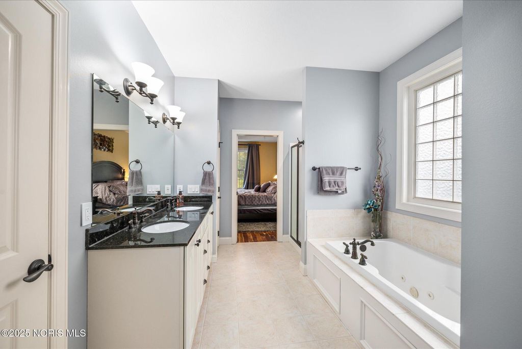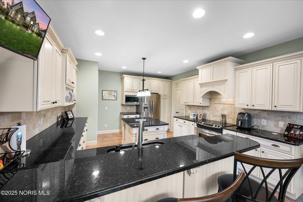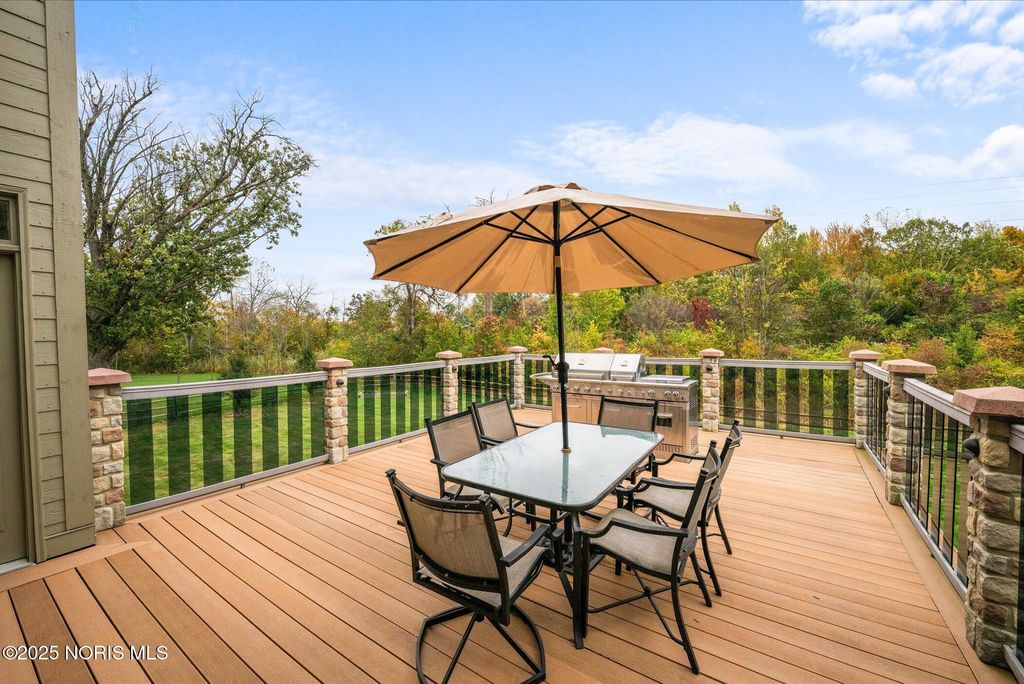 Welcome to this stunning, meticulously maintained home in Perrysburg. Featuring 4 spacious bedrooms including a 1st floor master suite, this home blends elegance, comfort, and modern dates throughout. The gourmet kitchen offers premium finishes, abundant cabinetry, and seamless flow to the inviting dining and living areas. A floor to ceiling stone fireplace anchors the living room. Outside you will find a nicely landscaped yard &custom composite deck w/built-in grill. Major updates include new Anderson windows 2025, roof 2022, furnace & A/C 2021, exterior painted 2021. Every detail has been thoughtfully cared for inside & out.
