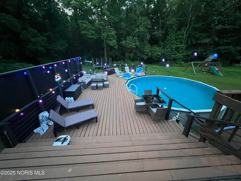 Nature Lover's Paradise "” Across from Oak Openings! Set on over 8 acres of mostly wooded land, this one-of-a-kind property offers unmatched privacy, scenic beauty, and year-round outdoor enjoyment. Explore numerous trails surrounded by deer, eagles, turkeys, and songbirds, leading to a secluded ½-acre pond complete with a sandy beach and stocked for fishing "” perfect for summer swims or winter ice skating. Prefer a pool? Relax in the new saltwater pool surrounded by a stunning multi-level deck, including a brand-new lower deck ideal for lounging and entertaining. A large steel barn with a full concrete slab and attached chicken coop provides endless possibilities "” easily convertible back to horse stables for equestrian enthusiasts. Inside, this spacious home spans over 4,000 sq ft and features multiple living areas, ideal for gatherings and overnight guests. The beautifully updated primary suite includes a luxurious walk-in shower and an expansive closet. The main kitchen serves as the heart of the home with an oversized granite island and abundant natural light pouring through floor-to-ceiling vinyl replacement windows. Recent updates include a half-bath addition, bedroom renovations, new appliances, flooring, paint, updated bathrooms, closet organizers, fireplace, landscaping, decks, pool, and pond restoration. From swimming and fishing in the summer to skating and sledding in the winter, this property offers endless opportunities for those who love the outdoors.