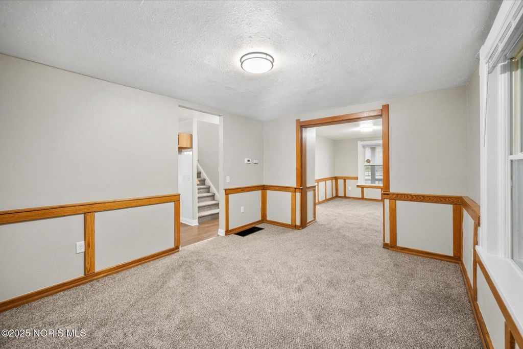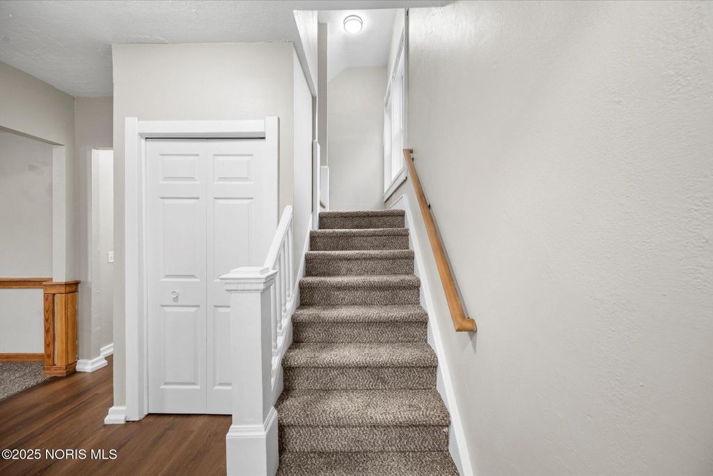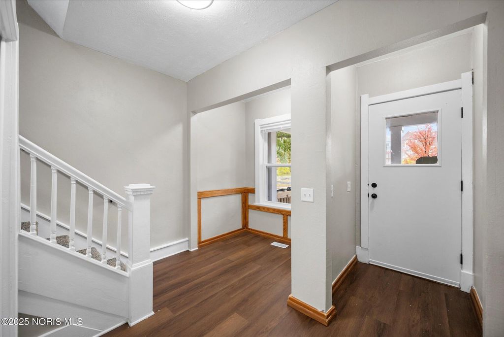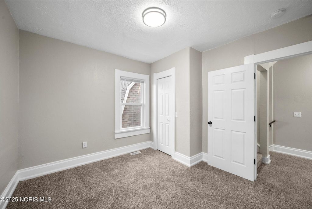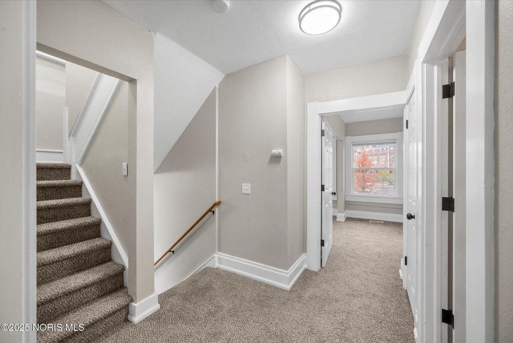 This spacious two-story brick home offers over 2,000 sq. ft. of living space, blending timeless character with thoughtful modern updates. Perfectly located right across from the high school, with the elementary school directly behind, and just one block from the Glass City Metropark and minutes from downtown, this home combines comfort, convenience, and community charm. The exterior features a covered front porch with a new railing, off-street parking in the back, and sliding doors off the family room that open to a small concrete patio"”perfect for relaxing or entertaining. Step inside through a welcoming entryway that leads to multiple inviting living areas. The front living room showcases a fireplace, original oak trim and wainscoting-style accents, highlighting the home's craftsmanship. Toward the back, the family room offers a fireplace, and a modern feel with fresh paint, new trim, and new carpet. The kitchen is spacious and functional, featuring updated fixtures, a tile backsplash, a dishwasher, and classic oak cabinetry. The dining area connects seamlessly with the front foyer, accented by a hall closet and more original wood details that preserve the home's charm. Upstairs, you'll find three comfortable bedrooms with new carpet, updated light fixtures, new doors, and blinds, along with two completely renovated full bathrooms featuring modern vanities, new tub surrounds, vinyl plank flooring, and updated finishes. The primary bedroom includes its own private bath for added convenience. The home's dual stairway design adds both character and practicality. The third floor is fully finished, providing a spacious fourth bedroom, office, or bonus living area, complete with new carpet, paint, and trim. The property also includes a full, clean basement that has been freshly painted, offering excellent storage or potential for additional living space. Additional highlights include all new doors and fixtures throughout, fresh interior paint, vinyl windows, updated lighting, and a brand-new roof. Altogether, this home perfectly balances classic craftsmanship with modern comfort"”move-in ready, beautifully updated, and ideally located near schools, parks, and downtown Toledo amenities.