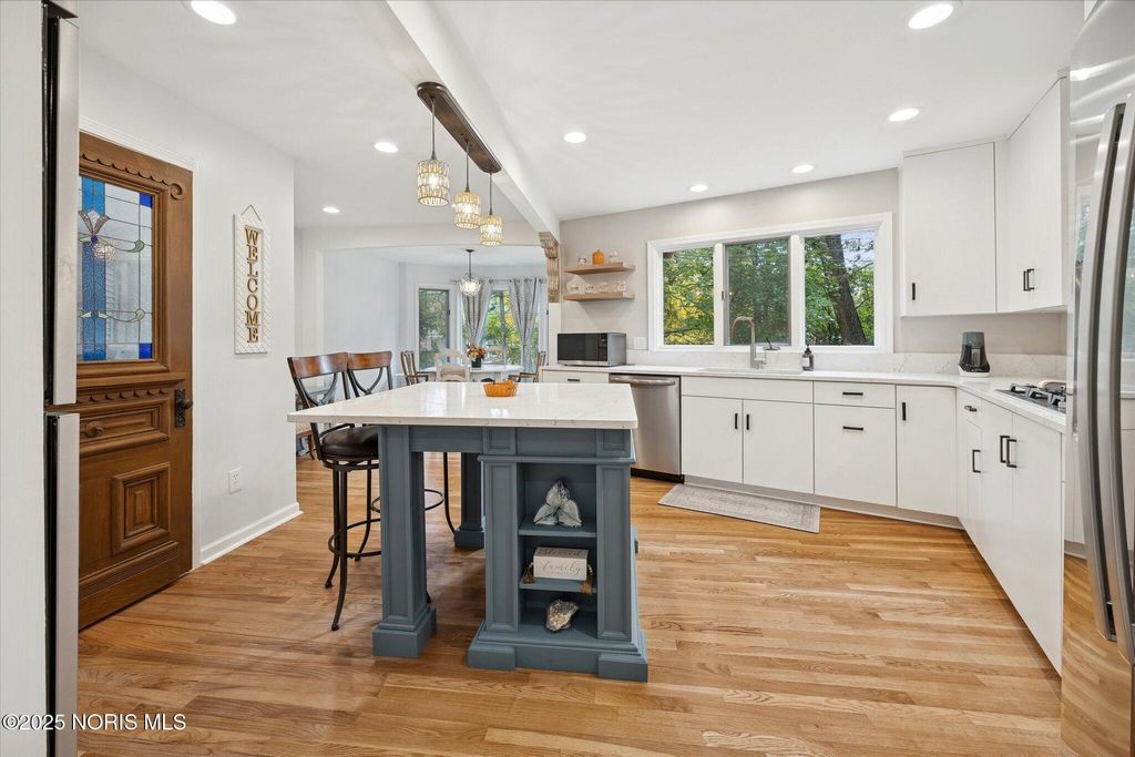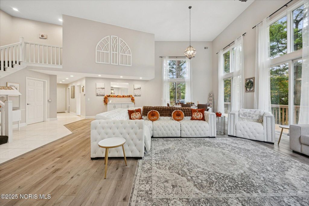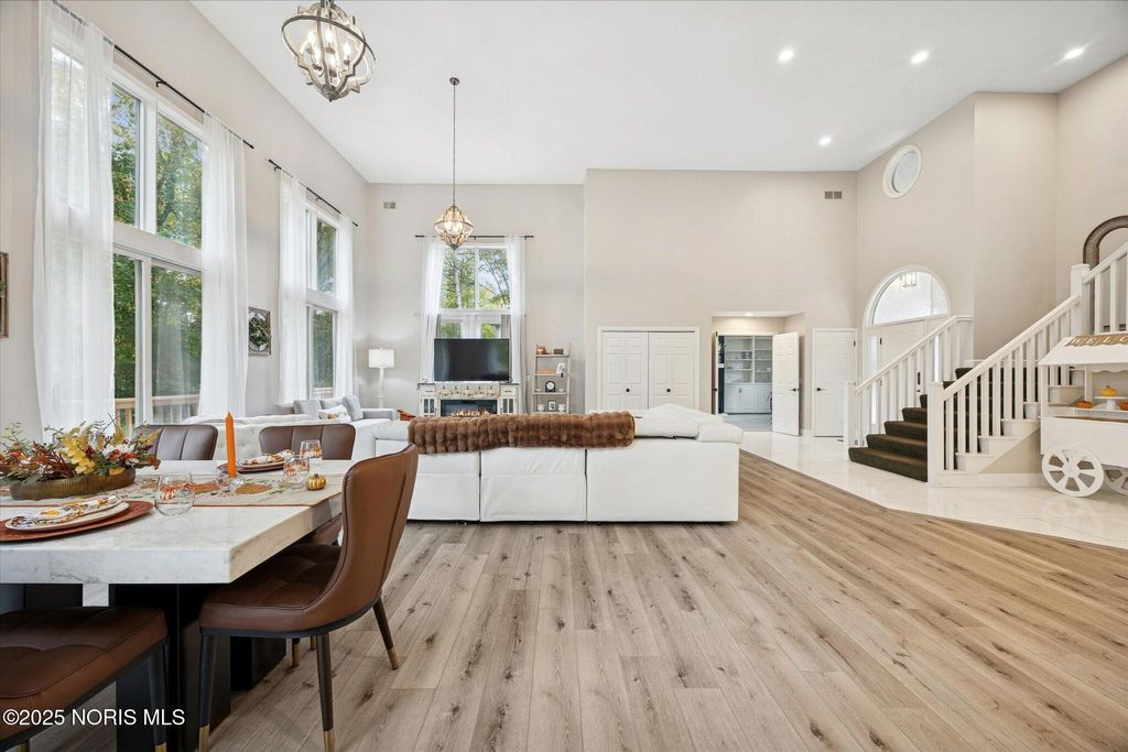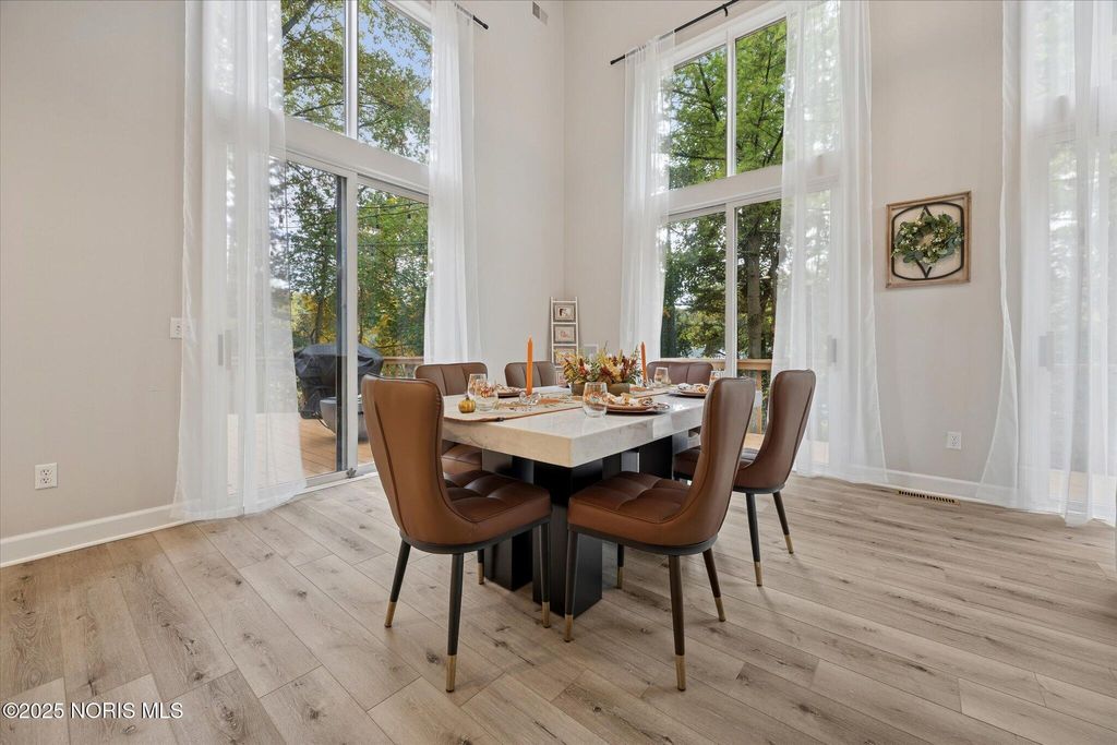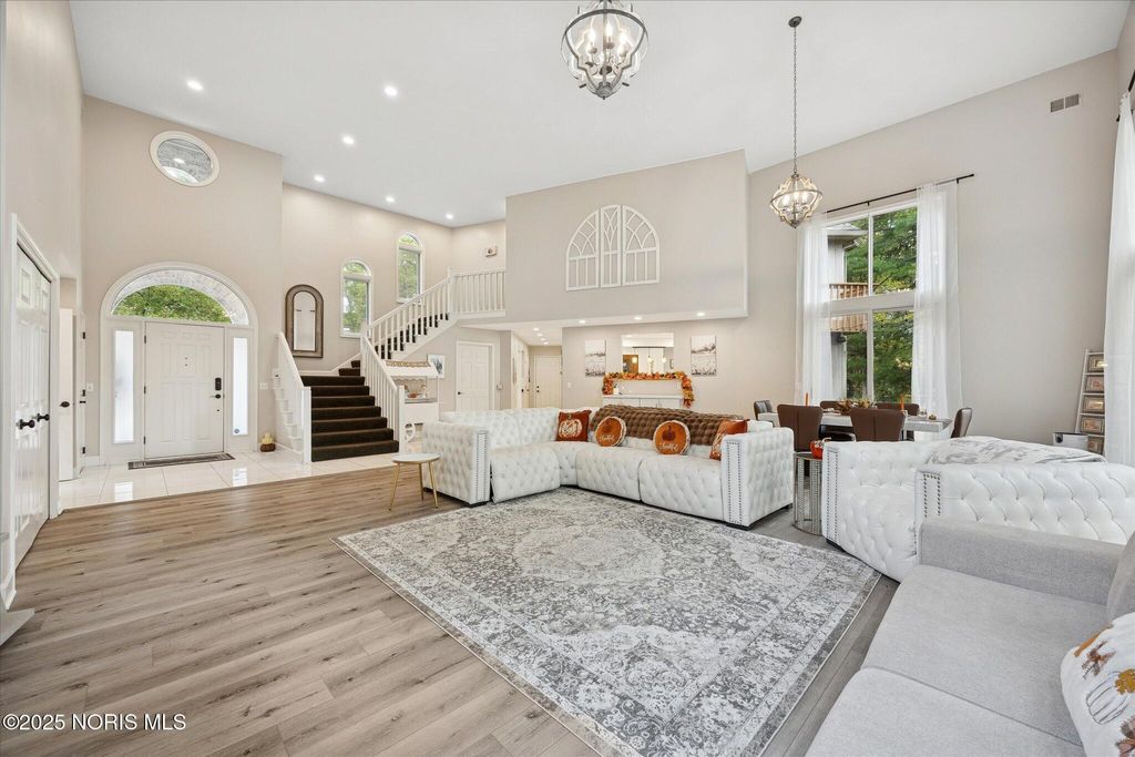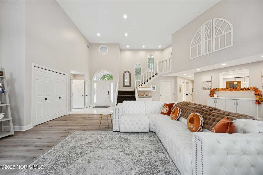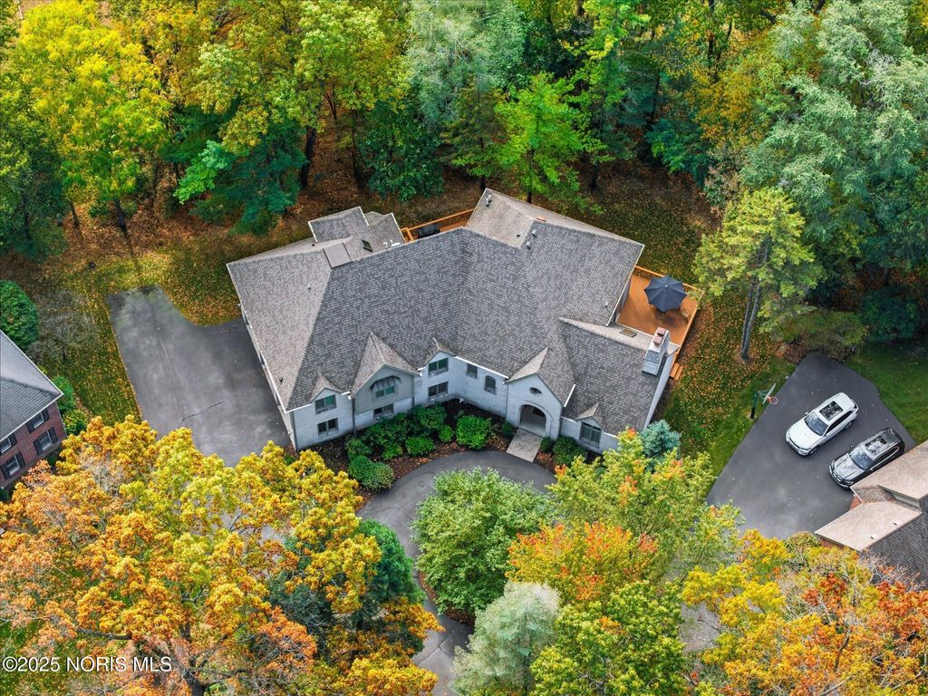 All-brick residence situated in sought-after High Oaks neighborhood, Sylvania schools, Toledo taxes. Nestled in a private, tree-lined cul-de-sac, featuring a stunning cathedral-style frontage. The interior is perfect for modern living, including a full kitchen renovation in 2024 with new appliances, a walk-in pantry, & a charming breakfast nook. Striking 2-story great room, w/ wet bar & panoramic views, ideal for entertaining and captivating your guests. Retreat to the updated primary suite, featuring heated floors, dual walk-in closets & private deck access. Additional junior suite on the third floor. The spacious finished basement is perfect for extra living space. Outside, enjoy the tranquility of the wrap-around deck and tree lined backyard. 3-car side-load garage with an additional U-shaped driveway. Peace of mind is assured with major updates including flooring in 2025, new roof in 2022, new water heater in 2019, new HVAC system in 2016, making this a truly move-in-ready, dream home just in time for the holidays.