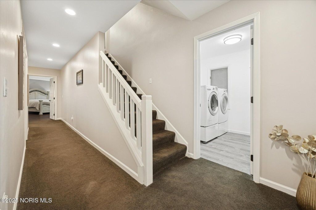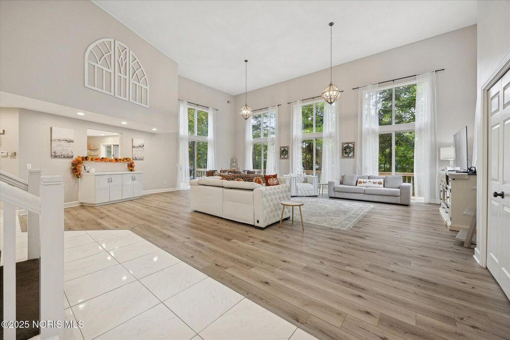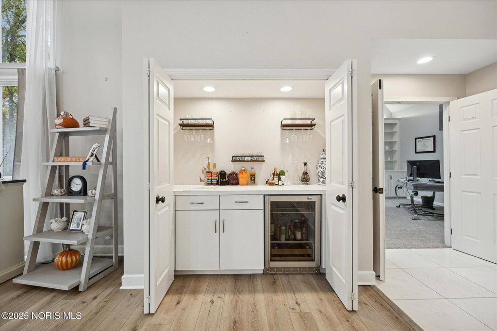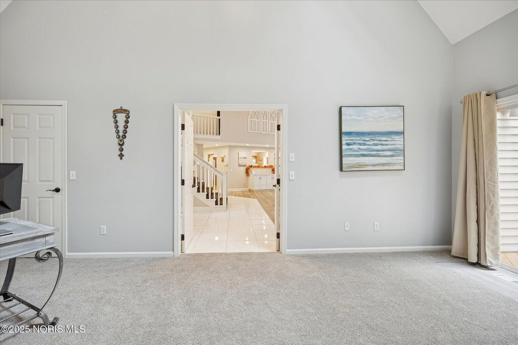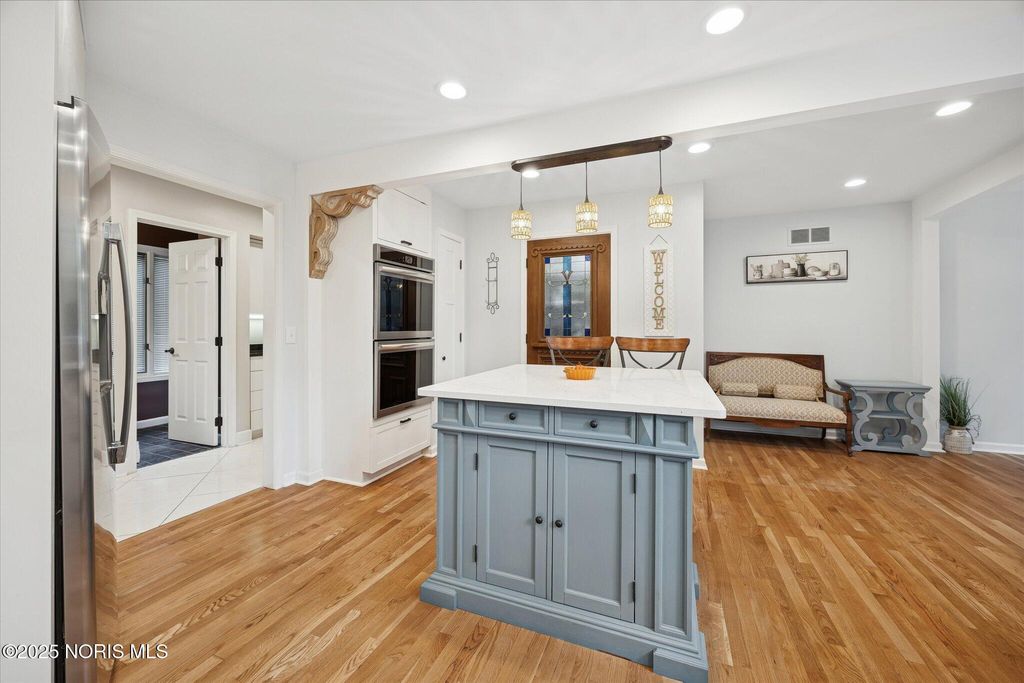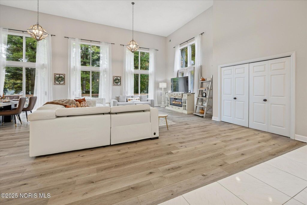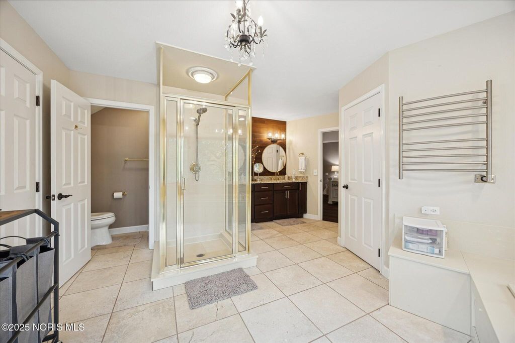 All-brick residence situated in sought-after High Oaks neighborhood, Sylvania schools, Toledo taxes. Nestled in a private, tree-lined cul-de-sac, featuring a stunning cathedral-style frontage. The interior is perfect for modern living, including a full kitchen renovation in 2024 with new appliances, a walk-in pantry, & a charming breakfast nook. Striking 2-story great room, w/ wet bar & panoramic views, ideal for entertaining and captivating your guests. Retreat to the updated primary suite, featuring heated floors, dual walk-in closets & private deck access. Additional junior suite on the third floor. The spacious finished basement is perfect for extra living space. Outside, enjoy the tranquility of the wrap-around deck and tree lined backyard. 3-car side-load garage with an additional U-shaped driveway. Peace of mind is assured with major updates including flooring in 2025, new roof in 2022, new water heater in 2019, new HVAC system in 2016, making this a truly move-in-ready, dream home just in time for the holidays.