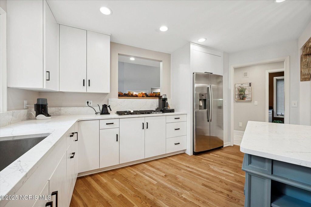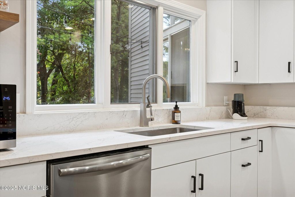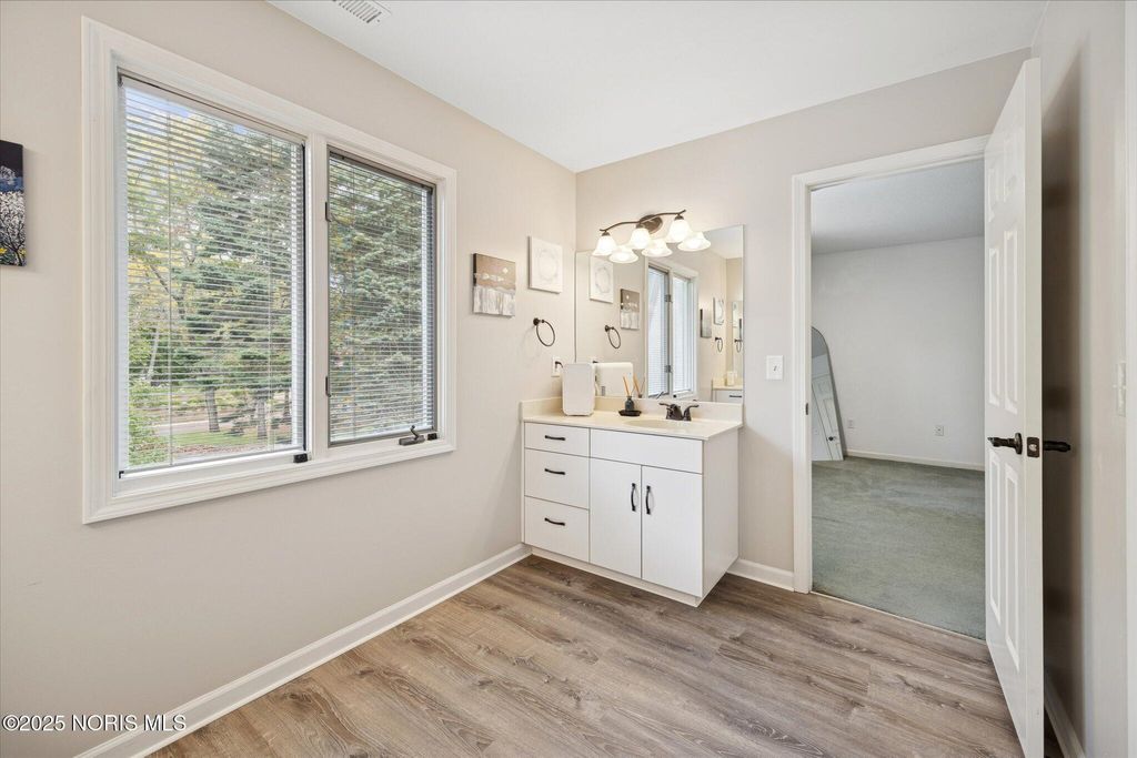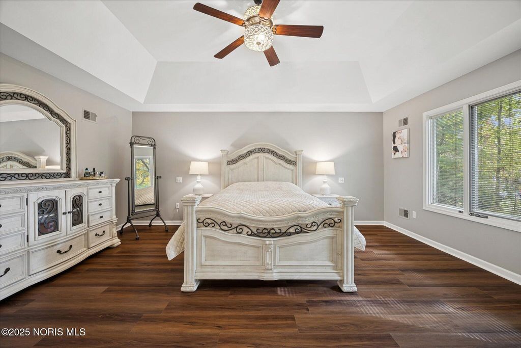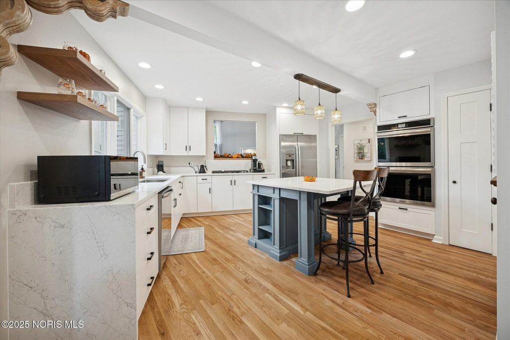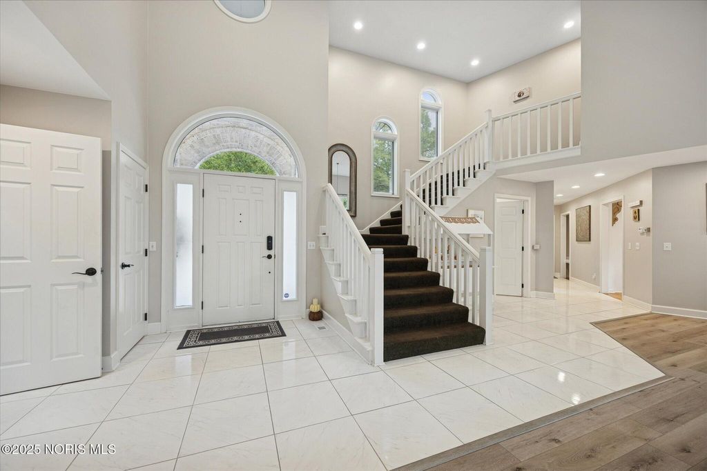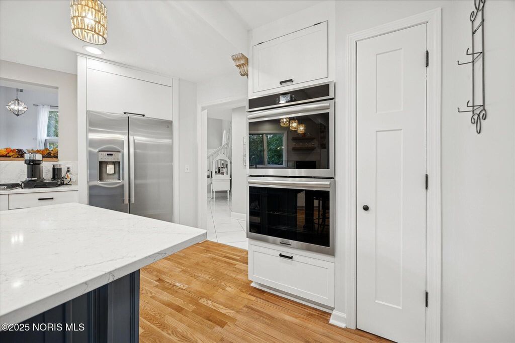 All-brick residence situated in sought-after High Oaks neighborhood, Sylvania schools, Toledo taxes. Nestled in a private, tree-lined cul-de-sac, featuring a stunning cathedral-style frontage. The interior is perfect for modern living, including a full kitchen renovation in 2024 with new appliances, a walk-in pantry, & a charming breakfast nook. Striking 2-story great room, w/ wet bar & panoramic views, ideal for entertaining and captivating your guests. Retreat to the updated primary suite, featuring heated floors, dual walk-in closets & private deck access. Additional junior suite on the third floor. The spacious finished basement is perfect for extra living space. Outside, enjoy the tranquility of the wrap-around deck and tree lined backyard. 3-car side-load garage with an additional U-shaped driveway. Peace of mind is assured with major updates including flooring in 2025, new roof in 2022, new water heater in 2019, new HVAC system in 2016, making this a truly move-in-ready, dream home just in time for the holidays.