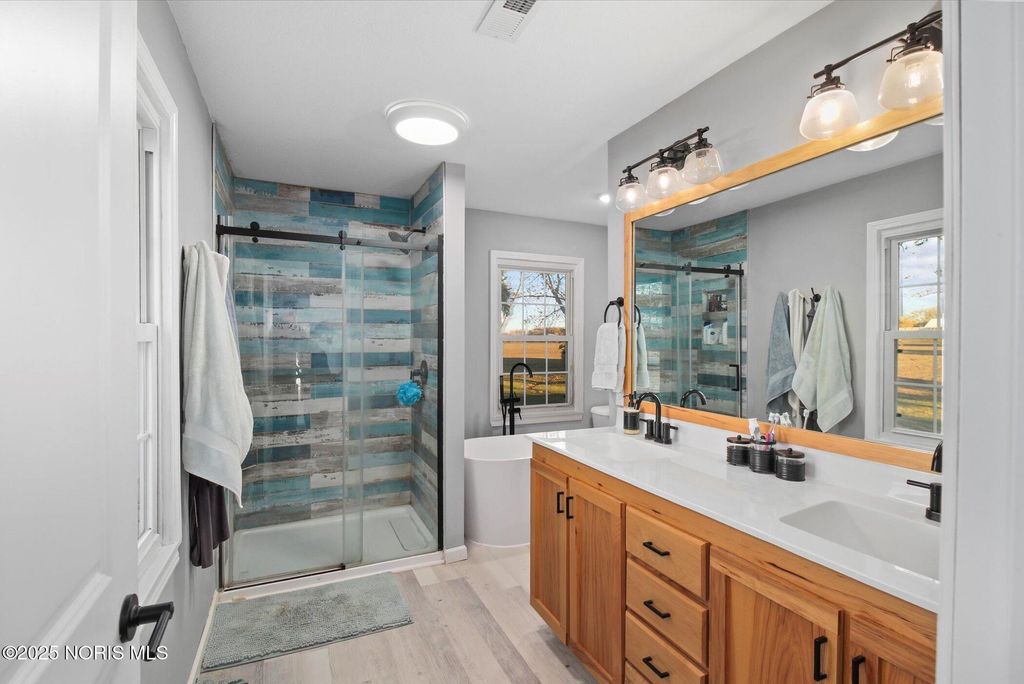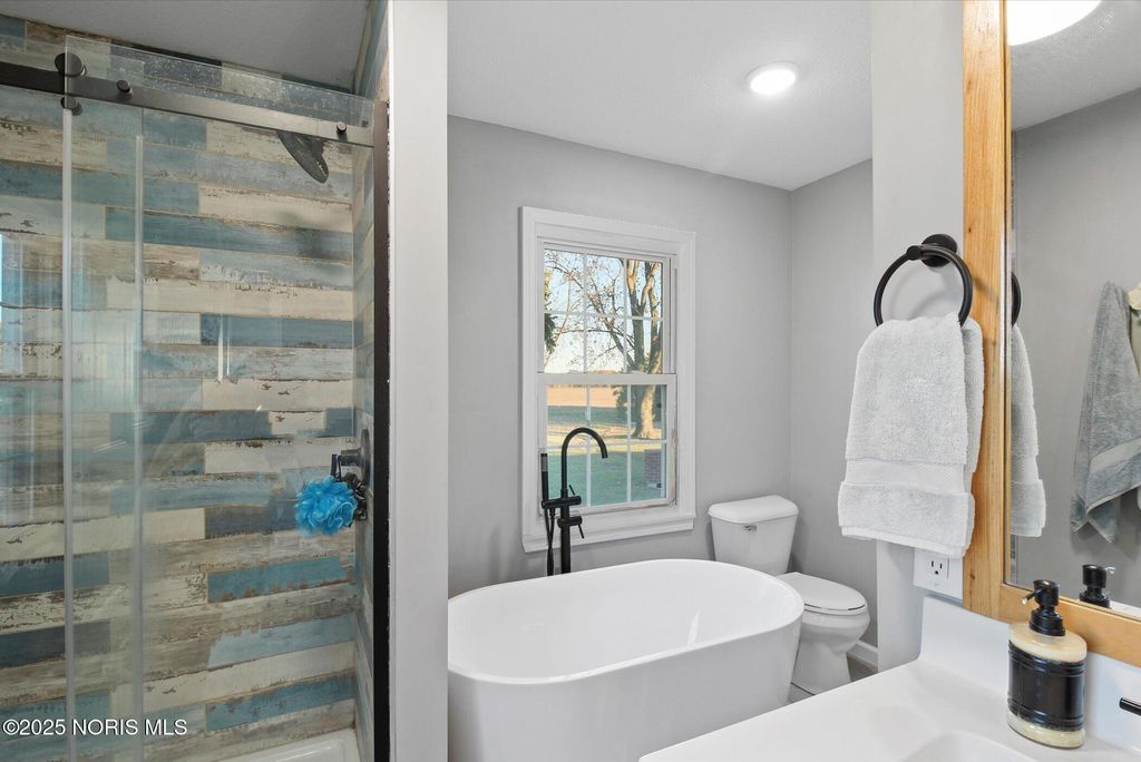 Updated home on almost a 2 acre lot. New furnace/A/C 2020, new lighting throughout, new flooring throughout, complete kitchen remodel in 2022, first floor master with ensuite (2020), updated half bath on main floor (2020), upper level full bath updated 2024, new well water pressure tank (2024), new water softener (2021), new roof in 2022. Two car detached garage (26 X 22), barn 1 (40 X 22), barn 2 (22X 20). Both barns painted in 2025.