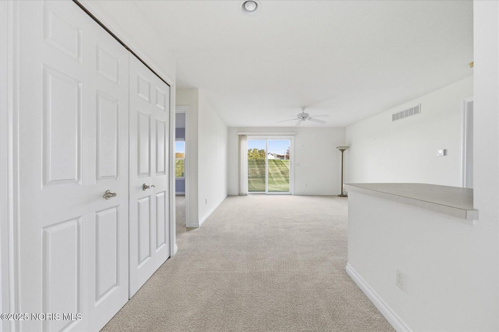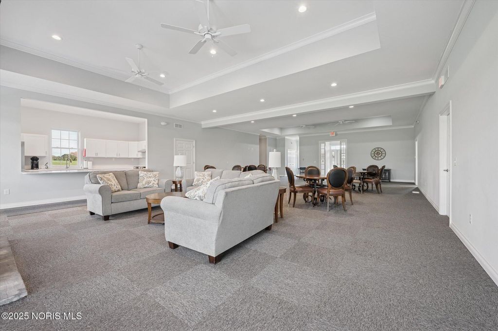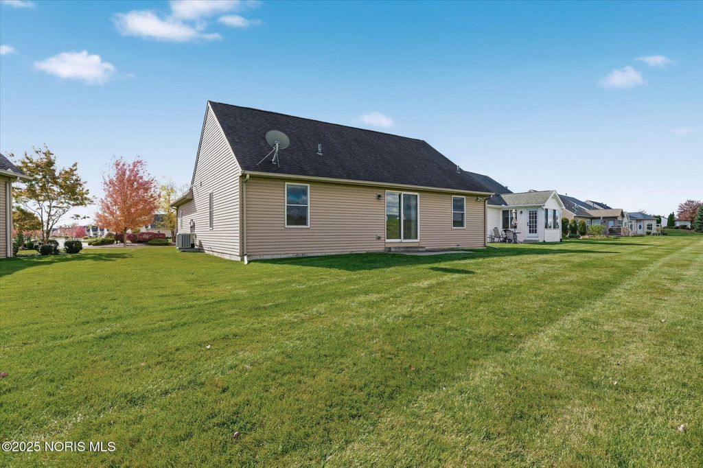 Downsize your home without sacrificing your quality of life! Waterside is a 55+ active lifestyle community complete with a clubhouse, inground pool and beautifully manicured grounds. This 2 bedroom/2 bath is nicely landscaped and is nestled into a culdesac location. Spacious living room with sliding door to your private back patio. Kitchen offers adequate cabinet space and appliances stay. Dining room or den gets great natural light. Full size washer/dryer conveniently located in oversize closet off living room. 2 car garage. This is a great opportunity to get into a cozy one story home and bring your cosmetic touches to make it your own. Assocation fee is $645 quarterly and covers lawn maintenance, snow removal and maintenance of grounds.