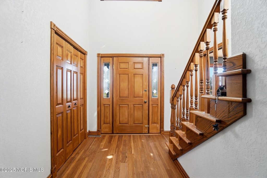 Talk about beautiful peaceful country living on 5 scenic acres. Brick home w/ attached 2-car garage and large pole barn with electric. All oak woodwork & cabinetry w/ cove ceilings, 2 stair entrances to 2nd floor featuring master suite w/ spacious walk-in closet. Walk out full basement with sliding doors, brick walkway to 3/4 acre stocked pond. this 3-4 bedroom 2.5 bath features a full wrap around deck. Water source comes from pond & home is Geothermal heating & cooling Strong bones with endless potential for modern updates to make it your own. Does need some cosmetic work.