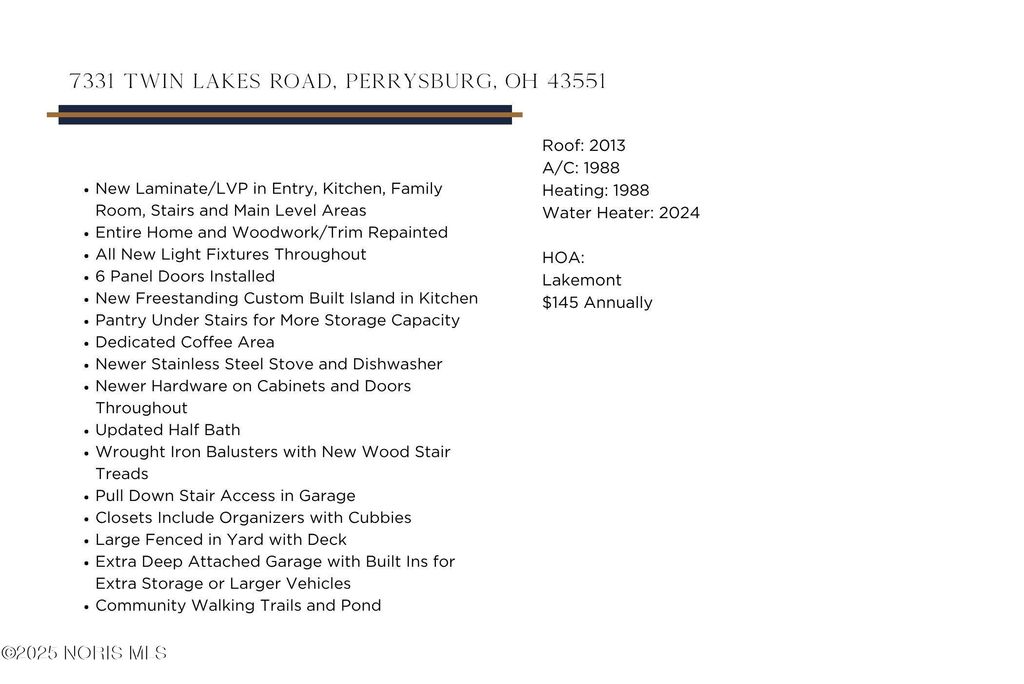Step inside and immediately feel at home in this beautifully refreshed and thoughtfully updated space. A warm, modern elegance flows throughout "” with new laminate and LVP flooring guiding you from the welcoming entry through the kitchen, family room, stairs, and main living areas. Freshly painted walls and woodwork give the entire home a light, airy feel, while classic 6-panel doors add timeless character and charm. The heart of the home "” the kitchen "” blends style and functionality with a newer freestanding island, sleek stainless steel stove and dishwasher, and a dedicated coffee nook where mornings begin with comfort and calm. A cleverly designed pantry tucked beneath the stairs offers extra storage without sacrificing space. Entertaining feels effortless under the glow of the updated dining room light fixture, and the newly refreshed half bath adds a touch of modern sophistication. As you move upstairs, wrought iron balusters paired with new wood stair treads create a striking focal point "” a subtle yet stunning upgrade. Everyday living becomes even more organized with closets that feature built-in cubbies and thoughtful storage systems, while the pull-down stairs in the garage provide convenient access to additional space. Outside, a beautifully fenced-in yard offers peace and privacy "” perfect for play, pets, or quiet evenings. The deck extends your living space outdoors, ideal for morning coffee, summer barbecues, or simply unwinding under the open sky. This home is not just updated "” it's been lovingly renewed to offer warmth, convenience, and a touch of everyday luxury in every detail.