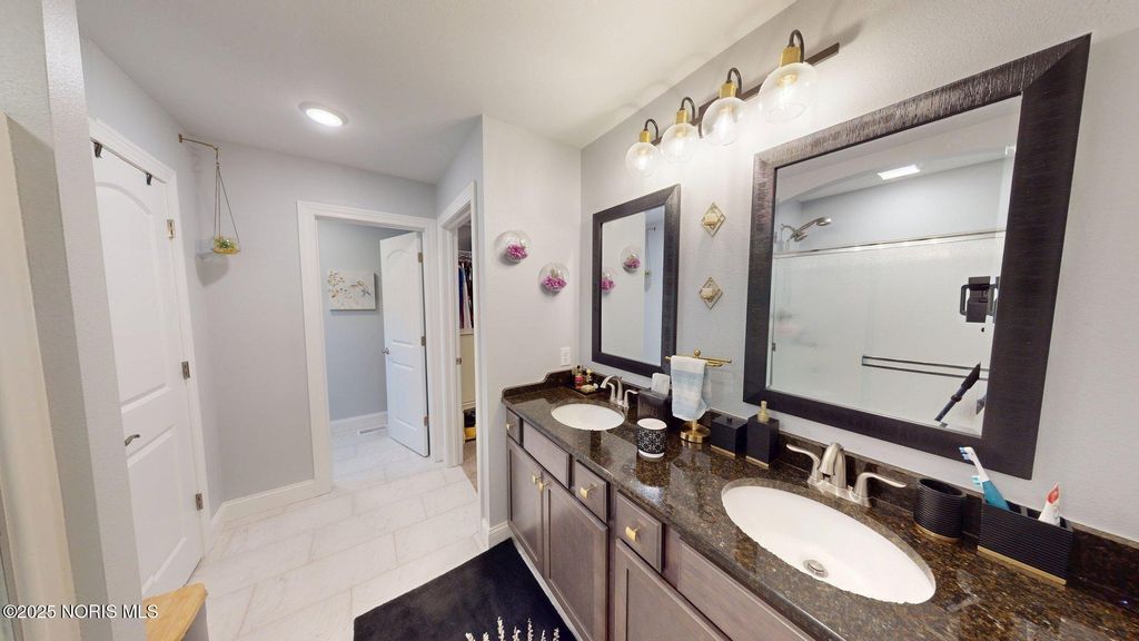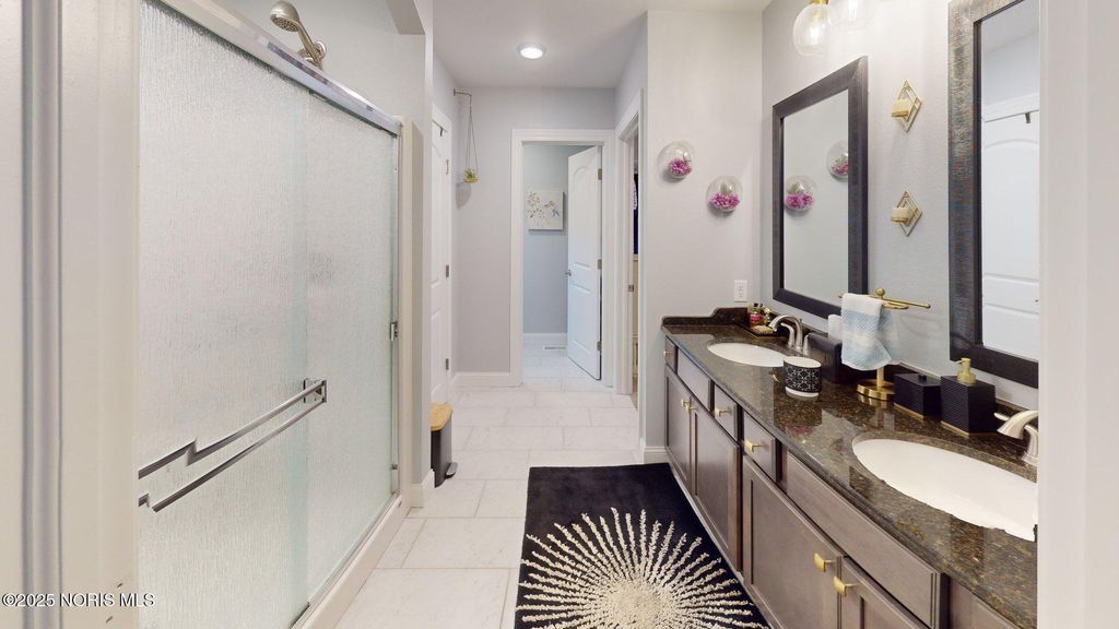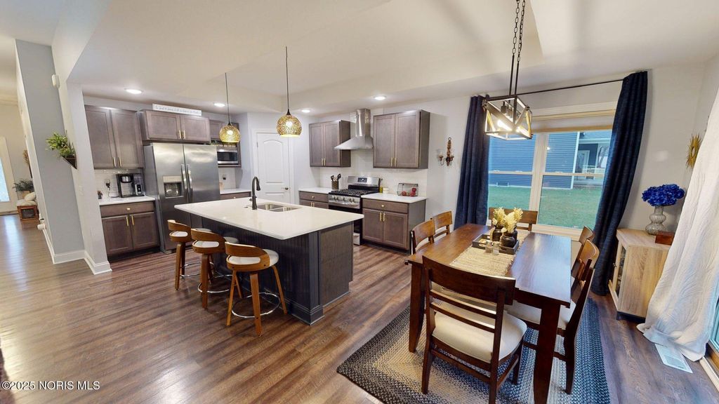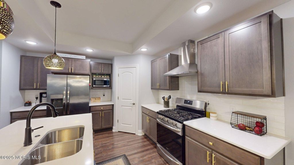 Welcome to this beautifully maintained ranch in Hidden Village, offering modern style and thoughtful upgrades throughout. The spacious kitchen features a center island with quartz countertops, stainless steel appliances, a stainless range hood, and Kraftmaid soft-close cabinets. The kitchen flows seamlessly into the inviting great room, complete with built-ins and a gas fireplace - perfect for everyday living and entertaining. The split-bedroom layout provides ideal privacy, with the primary suite offering a walk-in closet, dual sinks, and an enclosed water closet. A partial basement provides excellent storage and is ready to be finished to your needs. Enjoy the peaceful setting and the comfort of newer construction in a sought-after neighborhood. Don't miss this one!