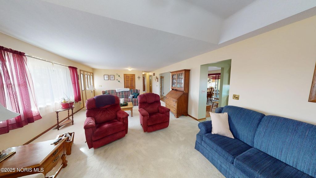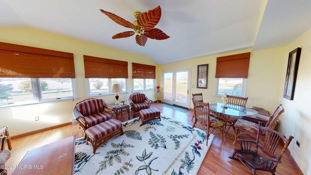 Beautiful country home situated on 2.26 acres with 3 bedrooms, 2 /2 baths with over 2400 sq. ft. Quality built home in 1995 with an amazing kitchen with so much space. Center island, lots of cabinet and counterspace with an eating area. There is also a formal dining room with hardwood flooring leading out to the heated sunroom with plenty of natural lighting. Concrete patio overlooking peaceful back yard. Large living room, 3 bedrooms with plenty of closet space. Primary bedrooms has his/her closets, along with bathroom that has double sinks, walk in shower and plenty of cabinet storage Laundry on main floor. Nice full basement for plenty of storage or finish for extra living area. 2 1/2 car attached garge plus 2 additional outbuilding. Circular drive. Roof, siding 2008. Water heater, side door and storm door, 2025. New water pump 2025, sump pump tube 2024. Furnace, CA 2015. This is a must see home with so much to offer!