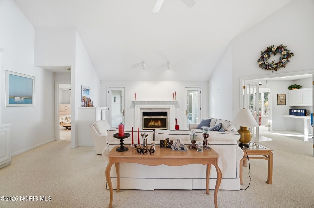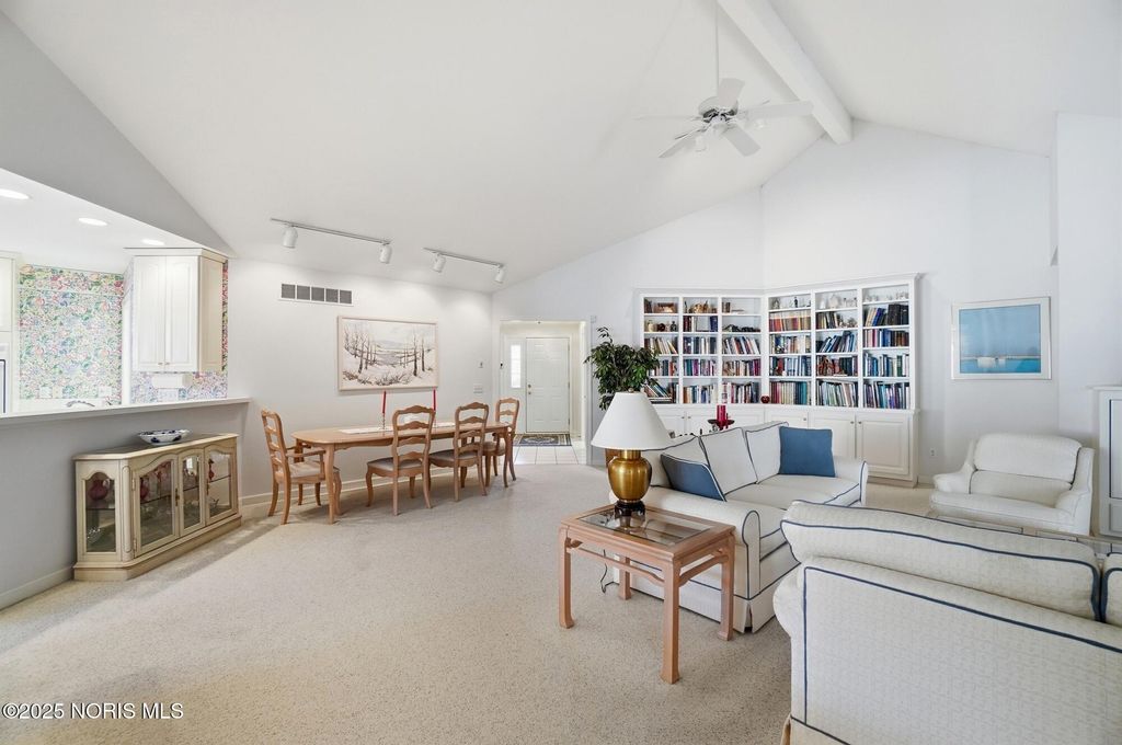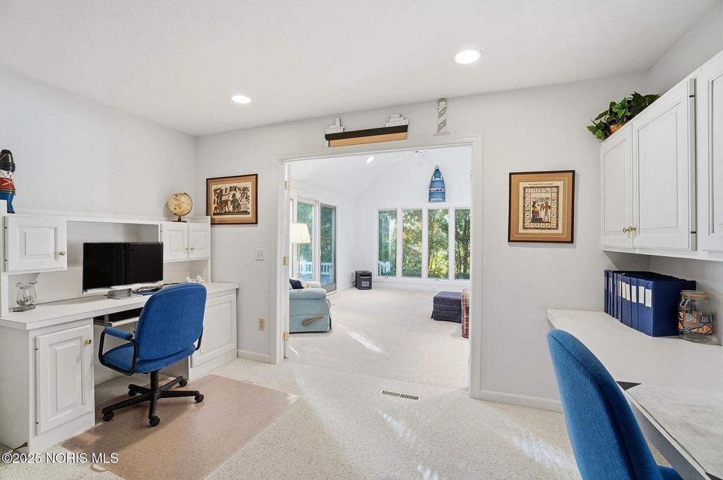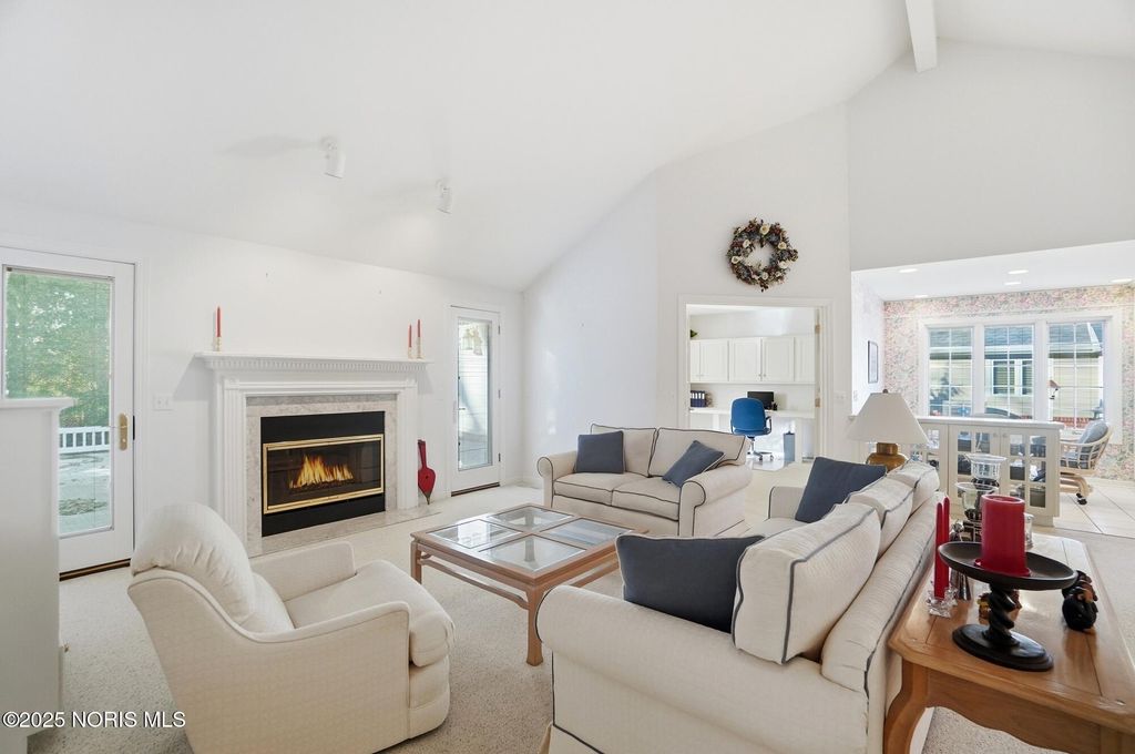 Located in the very desirable Larch Landing subdivision, this 3 bedroom 2 bath villa built by Fred Bobel is a unique opportunity. It features an open floor plan with cathedral ceilings, large living spaces perfect for entertaining, a private office space with built-in cabinets and desks, a light-filled sunroom for relaxing, a primary suite with double vanity sinks and large walk-in closet, and a private deck in back for fun nights outside. The side-load two car garage, professional landscaping, and new roof in 2021 accentuate this rare opportunity in Larch Landing.