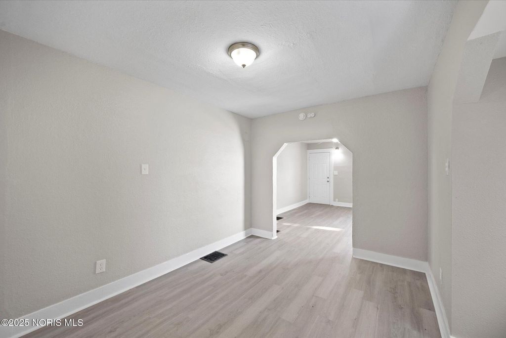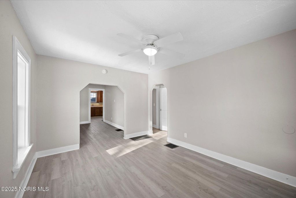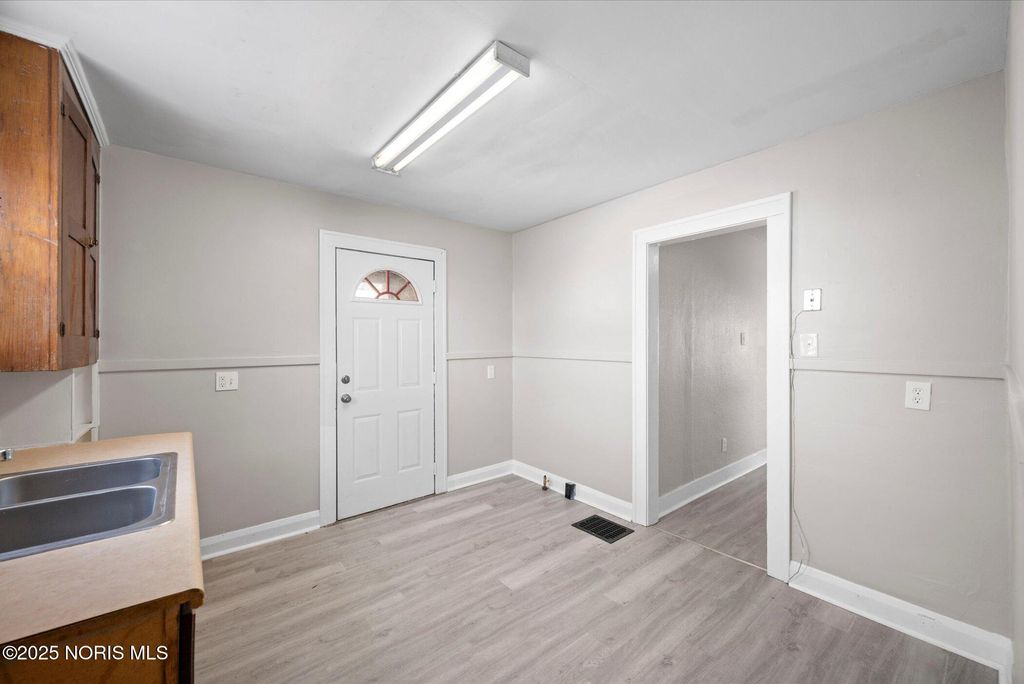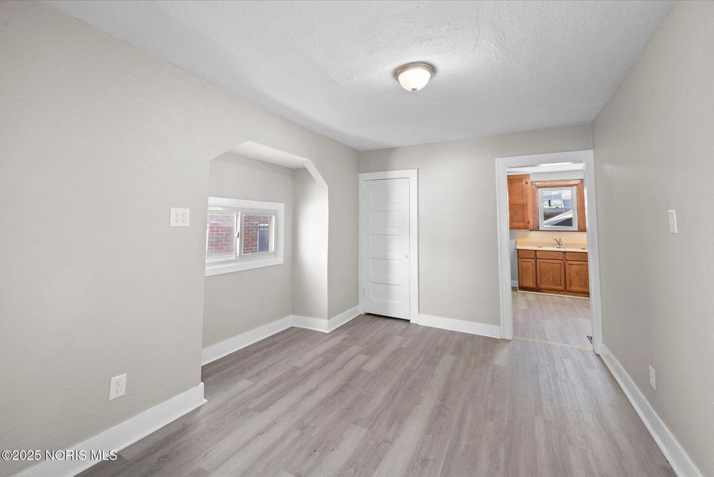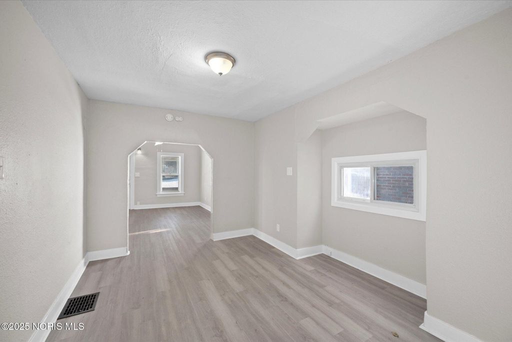 Move-in ready single-story home with quick access to major highways and everyday amenities. Enjoy the covered front porch and a low-maintenance exterior featuring vinyl siding, vinyl windows, and a dimensional shingle roof. Inside, the open-concept living and dining areas flow nicely and are finished with vinyl plank flooring throughout. Fresh paint and multiple updates give the home a clean, modern feel. The kitchen offers functional space for daily living and entertaining. This home includes two bedrooms and one full bathroom. The basement is clean and well-kept, offering additional storage and utility space. Electrical service features a 100-amp breaker box. Outside, you will find a private driveway, a detached garage with matching vinyl siding, and a small covered back porch for added convenience. With extremely low taxes, this property offers an excellent opportunity for a homeowner seeking affordable ownership or an investor looking for strong cash flow potential. Conveniently located with quick access to I-75 and just minutes from downtown.