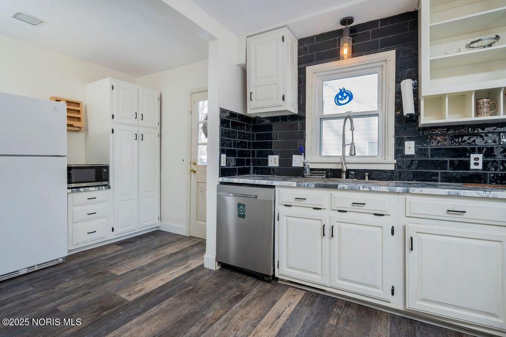Discover comfort, convenience, and thoughtful updates throughout this well maintained home. Major improvements include a new roof (2023), new furnace and AC (2023), all new windows (2021), and a new sliding glass door (2024) leading to new concrete patio, offering peace of mind for years to come. Inside, enjoy durable LVP flooring"”installed upstairs in 2019 and downstairs in 2022"”complemented by a gas fireplace that adds warmth and charm to the main living area. The kitchen was completely redone in 2022, creating a spacious, functional hub perfect for cooking and gathering. The bathrooms have also been freshly updated (2021), featuring new fixtures, flooring, vanities, and lighting. Newly added bar area (2022) provides an ideal spot for entertaining. All appliances stay"”including the washer, dryer, dishwasher, two full sized refrigerators, stove, and microwave"”making this home move-in ready. Outdoor living shines here as well. The privacy fence (2018) encloses a yard full of potential, already home to grape, blueberry, blackberry, and raspberry bushes, with space for additional garden beds. The quiet street, generous garage, and excellent location"”offering a quick commute to nearly anything"”enhance the everyday ease of living. Inside, the home feels open and inviting, with ample built-in shelving and cabinetry, great storage options, and walk-in attic access from the primary bedroom, which is currently used as a spacious closet. Each bedroom comfortably fits a king-size bed, and the attic layout even offers the potential to create a future primary bathroom to transform the space into a full primary suite. This warm, well-updated home offers comfort, functionality, and room to grow"”both inside and out!