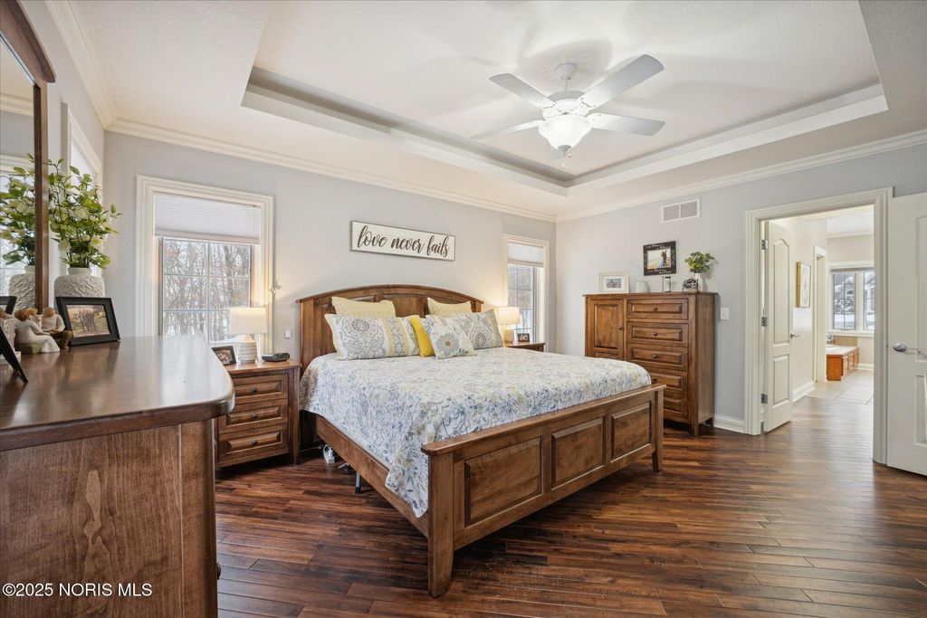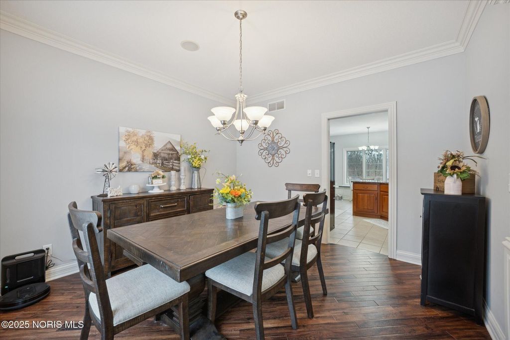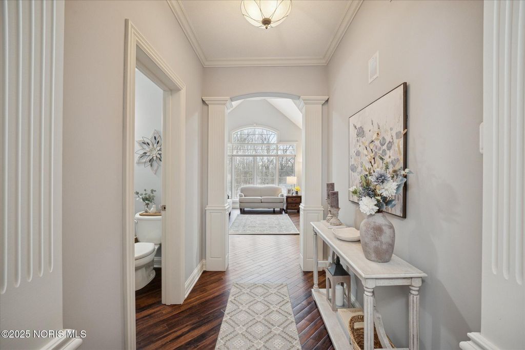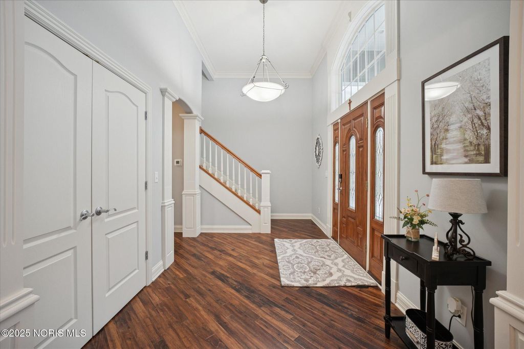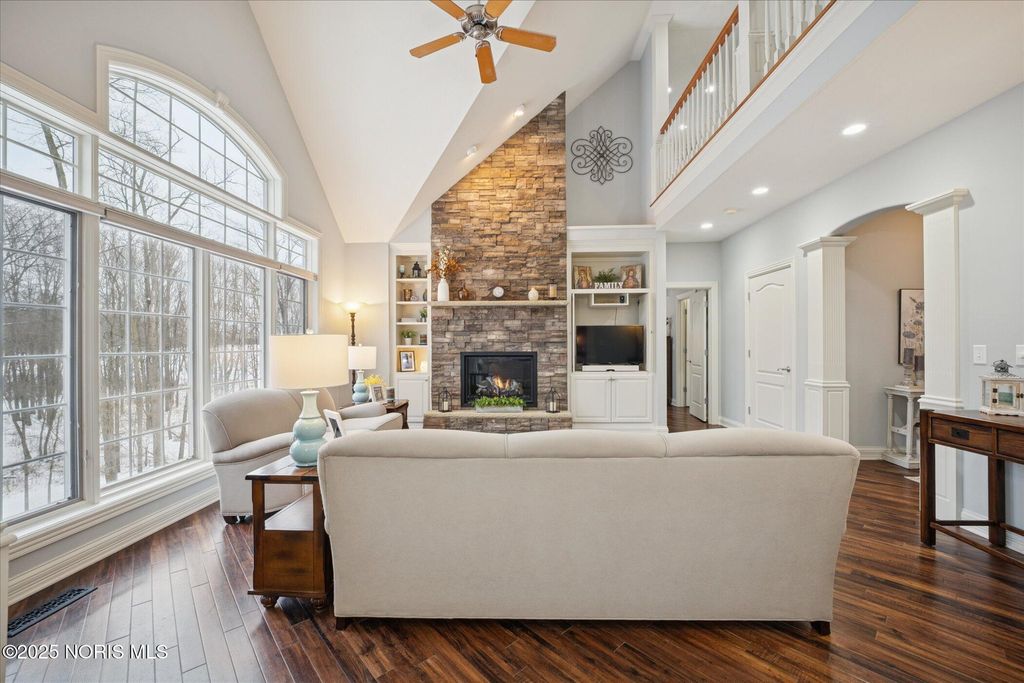 Welcome to a home where every detail has been carefully chosen and every space tells a story of comfort, style and sophistication. Offering approximately 4500 sq ft of main living space plus a beautifully finished lower level. This residence has over $100,000 in thoughtful updates. This blends design, warmth, and functionality at every turn. From the moment you enter through the front door, light fills the open and inviting spaces. The foyer flows gracefully into the formal living and dining areas featuring new lighting, fresh paint, and soft neutral tones. The kitchen is the heart of this home with gorgeous views, complete with customer cabinets and convection oven. The family room creates a perfect setting complete with rich hardwood floors. Elegant touches throughout. The first floor primary bedroom is a serene retreat, featuring luxurious ensuite bath. Upper area includes three spacious bedrooms, created with timeless style, creating an elevated experience throughout. The finished lower level expands the home's living and entertainment area, offering a large family room, a gym with specific flooring, and a full bath. When hosting movie nights, fitness sessions, or family/friend celebrations, this lower level offers options and comfort for every occasion. The outdoors is beautifully landscaped. The wide open backyard with trees and privacy make this a very serene setting. Additional highlights are the three car garage with side circular driveway. Another lot is included to preserve your privacy. From the main level and gorgeous primary suite, to the dynamic lower level and outdoor living spaces, this is a home that is so complete, functional, luxurious, and truly move-in ready! This home will exceed your expectations with timeless appeal.