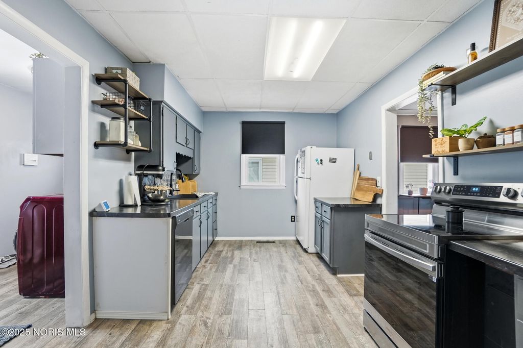 Welcome to this beautifully updated 2-bedroom, 1-bath home, offering the perfect blend of charm and modern convenience. Step inside to find new flooring upstairs, stainless steel appliances, and thoughtful updates throughout. Enjoy morning coffee on the inviting front porch, or entertain on the brand-new back deck overlooking the large, fully fenced yard"”complete with a new privacy fence for added seclusion. Outside, you'll love the newer 2-car detached garage, currently set up as the ultimate man cave, featuring an epoxy floor for a clean, polished look. The home also offers gutter guards for easy maintenance and a new roof in 2023, giving you peace of mind for years to come. Move-in ready and full of character, this updated property is the perfect place to call home!