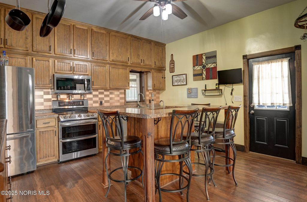 Welcome to a beautifully refreshed Italianate farmhouse set on 2.25 tranquil acres in the desirable Cory Rawson School District. With 2,872 square feet of living space, this 4-bedroom, 2.5-bath home offers a seamless mix of classic craftsmanship and modern-day functionality. The interior features a bright, open layout designed for easy entertaining and comfortable daily living. Spacious bedrooms, airy common areas, and a well-sized kitchen are filled with natural light, creating a warm and inviting atmosphere throughout. Outside, the property offers exceptional versatility. Four garage bays include newly poured concrete floors and a recently added second garage door, providing excellent space for vehicles, storage, or creative projects. Both outbuildings have been upgraded with electric, expanding their potential for workshops, hobbies, or future use. A full unfinished basement with exterior access adds valuable storage or expansion opportunities, and the owned water softener system is an added convenience. Surrounded by open green space, the 2.25-acre lot offers privacy, room to roam, and endless outdoor possibilities. Distinctive Italianate details, generous square footage, and a prime location make this property a rare opportunity. Whether you're looking for a peaceful countryside setting or a home with flexibility to grow into, this one is worth seeing in person. Schedule your private tour today.