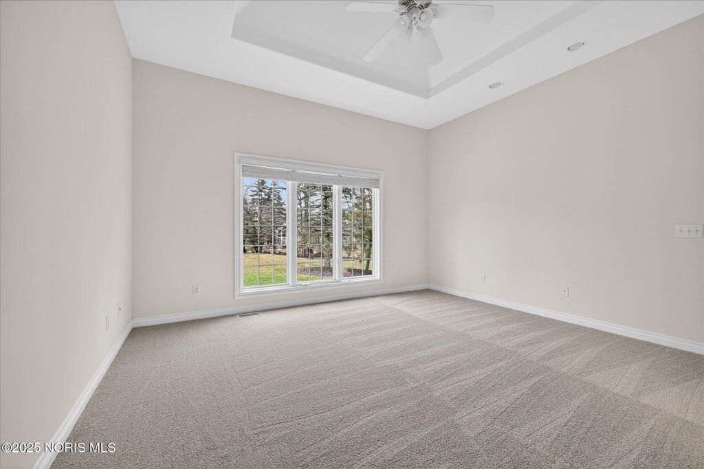 Superb Monclova Township home has been loved and meticulously maintained by one owner. Nestled onto a beautifully landscaped corner lot, a large front porch will greet you and the 12x28 cement patio in back will be where you enjoy BBQ's. Soaring ceilings, architectural nooks, crown molding, pillars, open floor plan. Wall of windows & gas fireplace in Great room. Granite eat in Kitchen features tile, stainless appl, pantry and breakfast nook with slider door. Spacious main level laundry w/cabinets. Private den has beautiful built-in cabinets w/granite tops. Main level Primary Suite w/tile shower/jetted tub and large walk in closet. Formal dining room perfect for hosting friends/family. Upper level features a loft overlooking the Great Rm. 2 bedrooms & bath on upper level; one bedroom has huge bonus room attached offering possible 4th bedroom or playroom! Full finished bsmt with L shaped rec area, half bath, preplumbed wetbar, workshop & finished storage area. You just need to install your flooring of choice! Brand new carpet in Primary suite/closet, dining room and great room. 3.5 car side load garage gives plenty of room for your vehicles & toys!