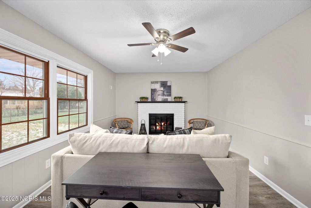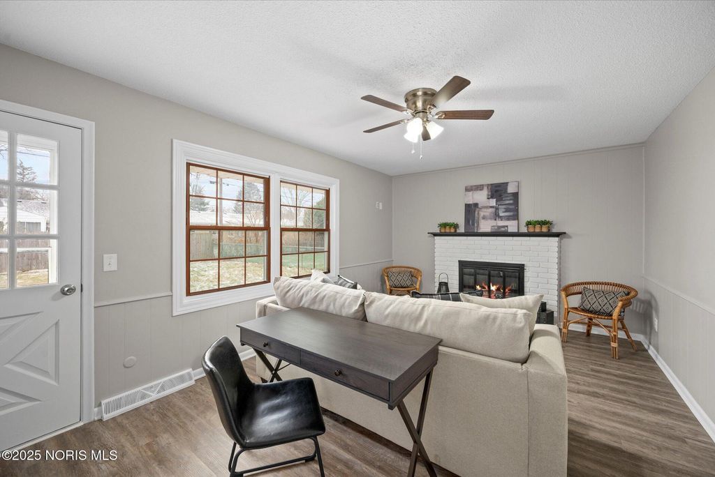 Fully renovated and move-in ready! This beautiful 3-bedroom, 1.5-bath home features brand-new luxury vinyl plank flooring and plush carpet throughout. The inviting family room is highlighted by a cozy fireplace, perfect for relaxing or entertaining. The updated primary bathroom boasts a stylish double vanity for added convenience. Enjoy outdoor living on both the front and back patios, with the back patio equipped with a remote-controlled retractable awning. Additional upgrades include Gutter Helmet on the gutters for low-maintenance living and a spacious 2-car garage. A perfect blend of modern updates and functional features"”this home is a must-see!