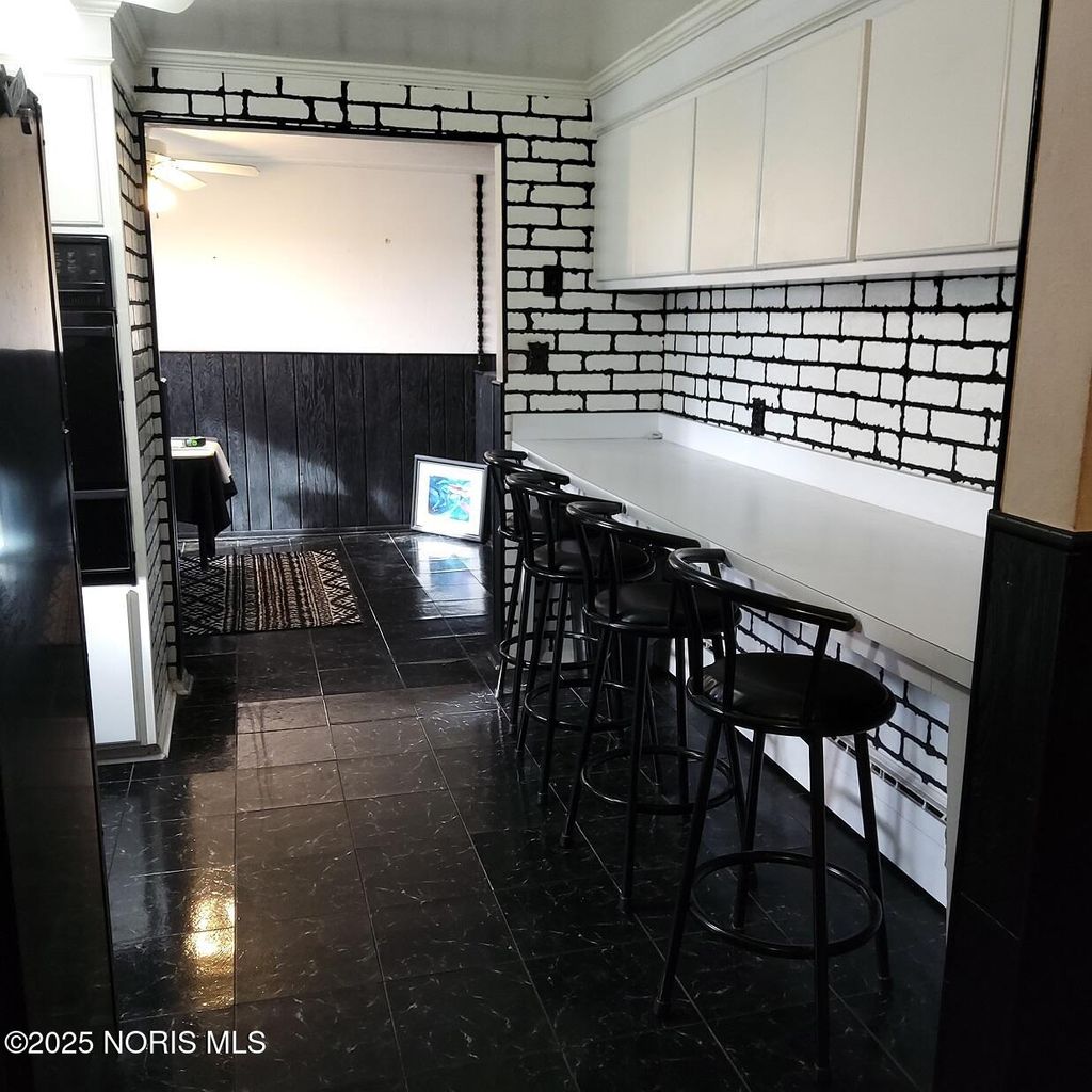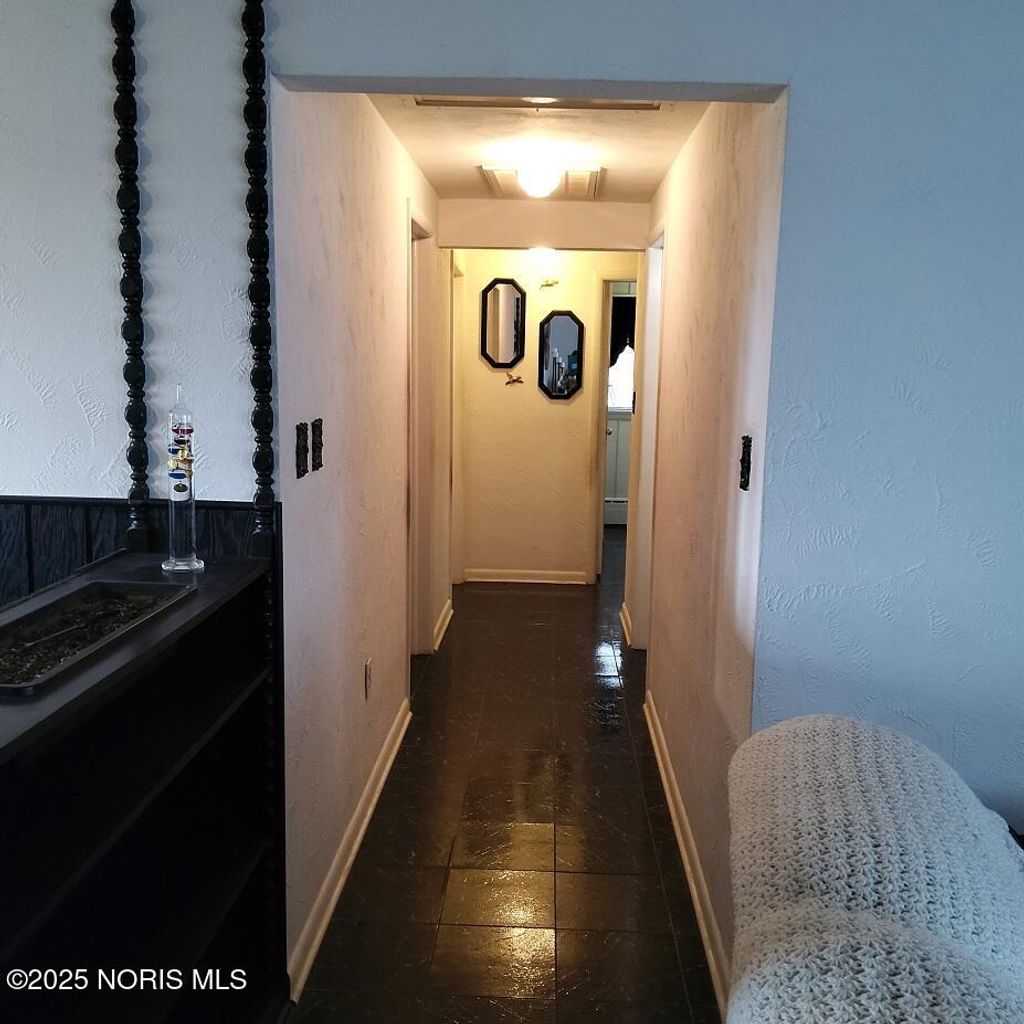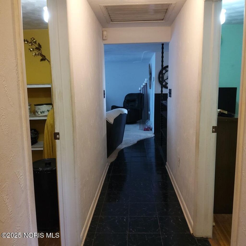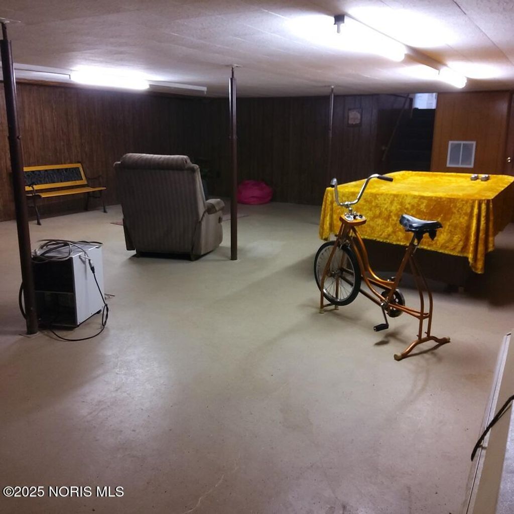 This brick ranch-style home includes four bedrooms, one and a half bathrooms, a den, a kitchen, a dining room, a living room, and laundry facilities, all conveniently located on the main level. The 11 x 22 breezeway serves as an additional space for guests. There is a fully finished basement equipped with three heating options (Electric, Forced, and Hot Water Boiler), a complete full house generator. and a 22 x 30 heated garage that accommodates two cars and features a nice workshop area. We can't forget it also has AC. Nestled on a charming lot in downtown Ayersville, this residence is within walking distance of the school, a dairy bar, a pizza shop, and a convenience store. With plenty of storage available, it also features wooden decks at both the front and back of the house. This is an ideal location for raising a family.