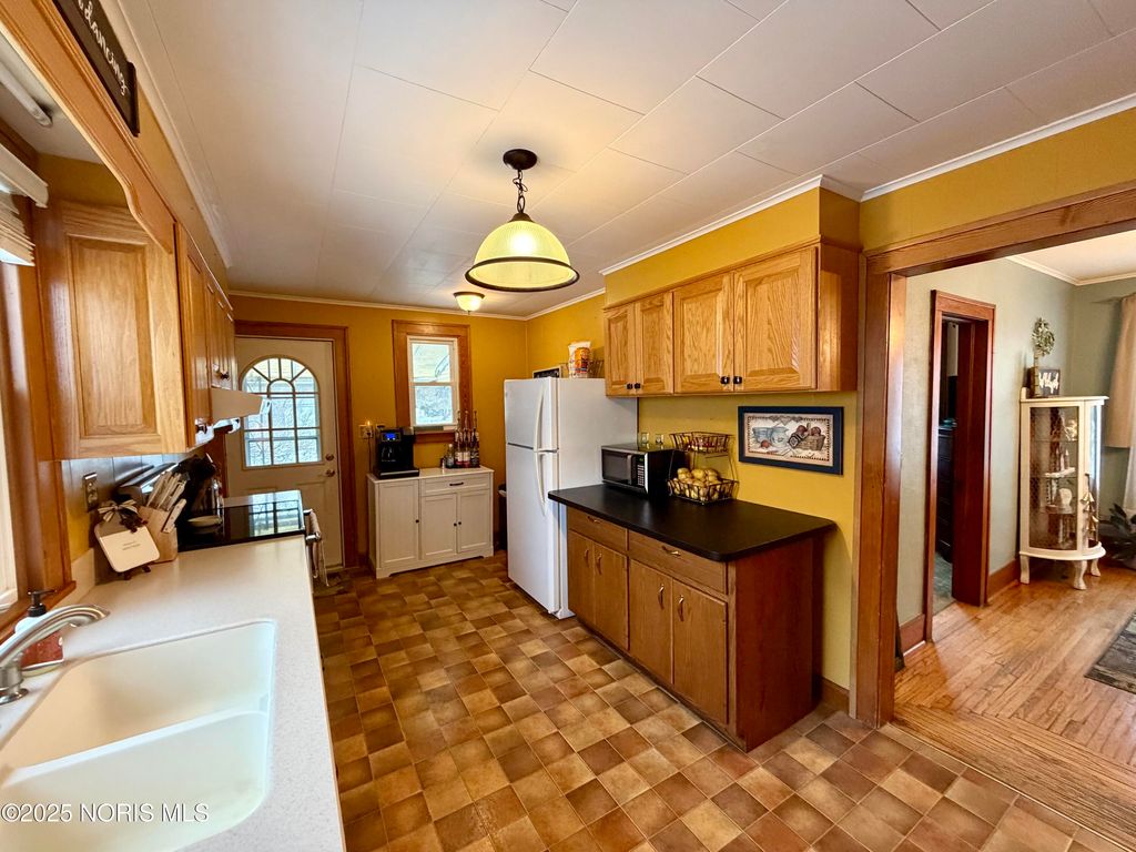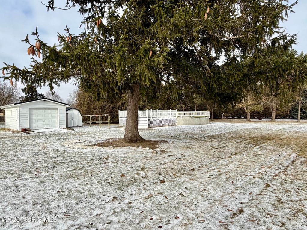 This beautifully maintained 4 bedroom, 2 bath home offers the perfect blend of classic charm and modern updates, all in a convenient location near the school. Situated on nearly an acre of land, this property provides a rare space and privacy in town. The huge backyard is designed for fun and relaxation, complete with an above-ground pool and a deck - perfect for summer entertaining. A firepit tucked among mature trees creates a peaceful setting ideal for evenings with family and friends. Inside, you'll find hardwood floors, abundant natural light, and character throughout. The spacious kitchen features beautiful wood cabinets. With improvements throughout, including a brand-new metal roof in 2024, this house is truly a must-see!