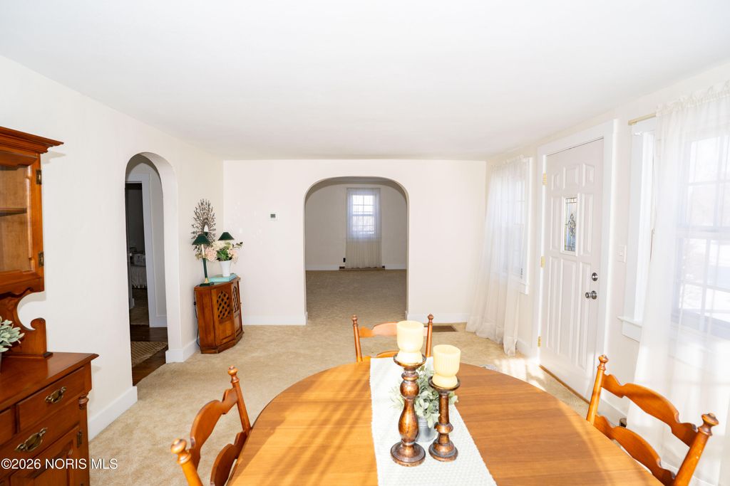 Welcome to 606 Lincoln Avenue, Paulding, Ohio "” a charming and well-maintained 3-bedroom, 1-bath home filled with character and timeless appeal. Step inside to a bright dining room wrapped in large windows that flood the space with natural light, leading through a beautiful arched doorway into the spacious living room. The eat-in kitchen features attractive lighting and generous cabinetry, providing both style and functionality. 2025 updates include: remodeled bathroom, new kitchen flooring and faucet, and freshly painted interior and exterior. 2023 updates include: new furnace and new stove. Replacement windows and added storm windows provide improved energy efficiency. Enjoy relaxing, gardening, and gathering in the spacious yard. A detached 2-car garage offers additional space for hobbies and storage, plus a shed for outdoor supplies and equipment. This affordable home is located near local schools, parks, and the town square "” schedule your showing today!