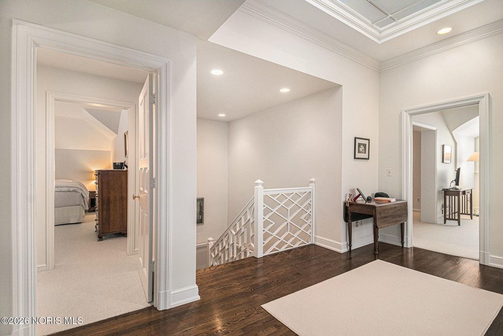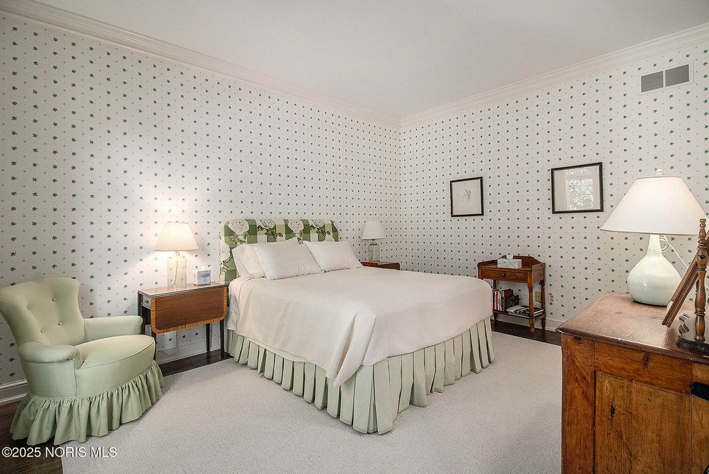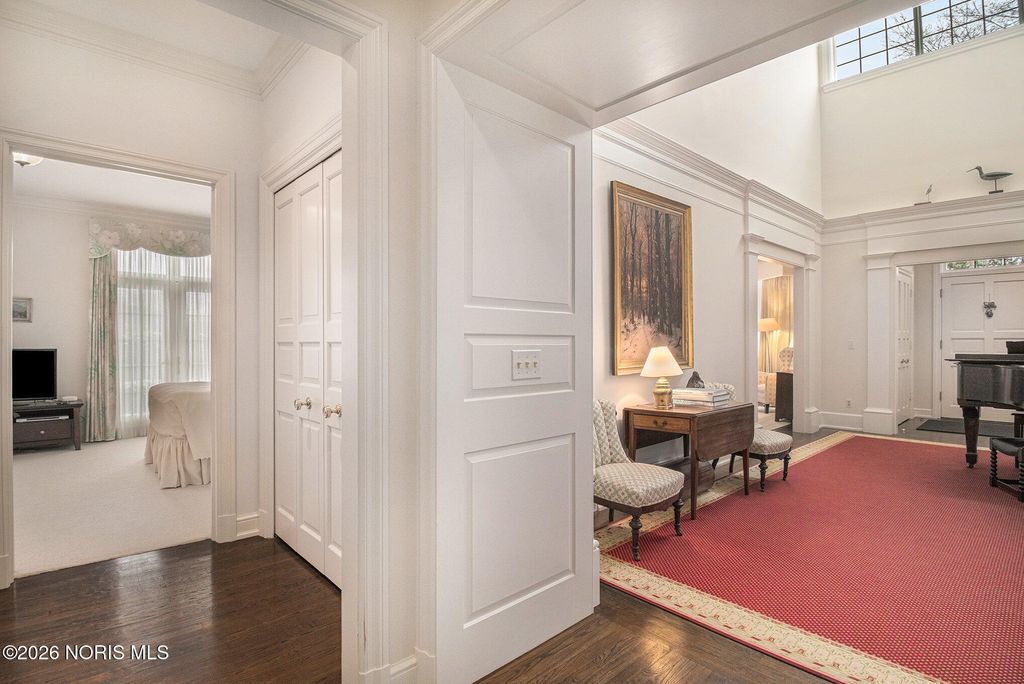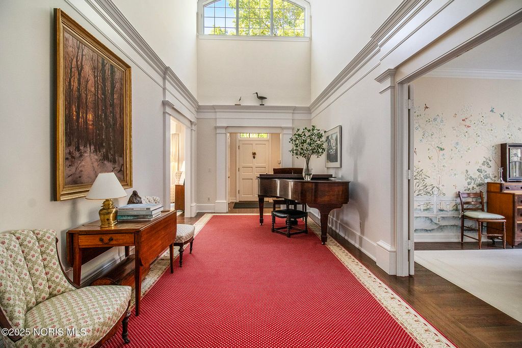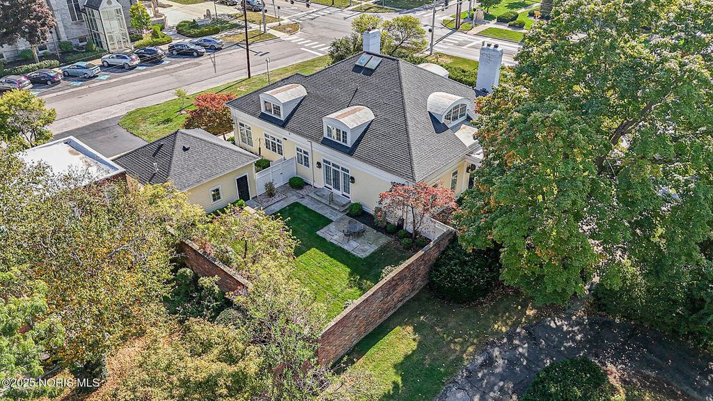 Remarkable find in uptown Historic Perrysburg! Built in 1993 home was designed for gracious living. Lovely entry welcomes you to grand foyer boasting vaulted ceiling w/skylights for abundant natural light. Formal living room w/fireplace, crown & bay window. The Formal dining room opens to brick-walled yard. Eat-in kitchen, butler's pantry & wet bar designed for entertaining. Primary main floor suite w/gas fireplace, sitting area, huge walk-in, laundry closet & built-ins. 2nd main floor en-suite bedroom. 3 more bedrooms on 2nd floor (one a suite w/ private bath & walk in attic w/kitchenette) 2nd walk in cedar closet off 5th bedroom. Huge finished basement (possible yoga, theater, exercise rms.) Much much more!