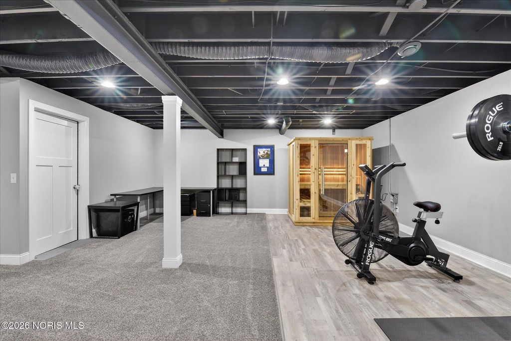 Welcome to 3915 Ten Mile in Sylvania, offering exceptional added living space and a thoughtfully designed lower level. The finished basement by Toledo Basements features a wet bar, full bathroom, and flexible space ideal for entertaining, recreation, or additional living use. A traditional sauna from Almost Heaven Saunas adds a unique element rarely found in the area. The basement significantly expands the home's usable square footage, creating options for a media room, home gym, or hobby space. The garage was freshly painted in summer 2025 and enhanced with durable epoxy flooring. Outdoors, the fenced backyard (installed 2021) backs up to a peaceful pond, offering scenic views and memorable sunsets. Summer evenings are especially enjoyable with the tranquil water backdrop and open sky. Located in the Bridgecreek community, this home combines functional upgrades with a setting that highlights outdoor enjoyment and privacy. A strong blend of indoor versatility and outdoor appeal makes this property a standout opportunity in Sylvania.