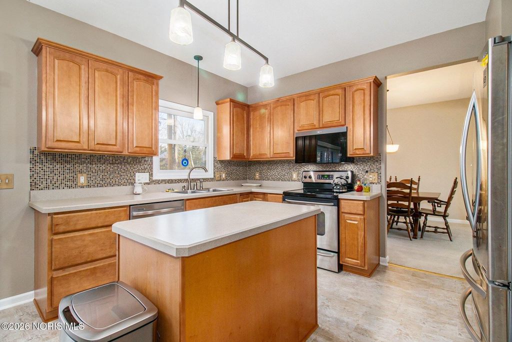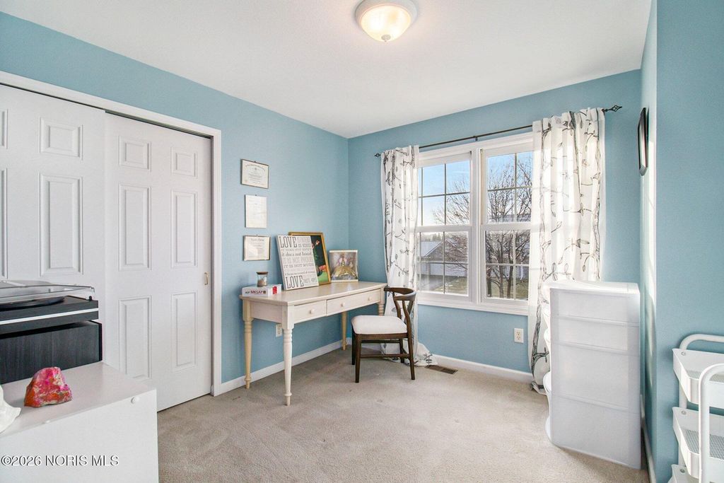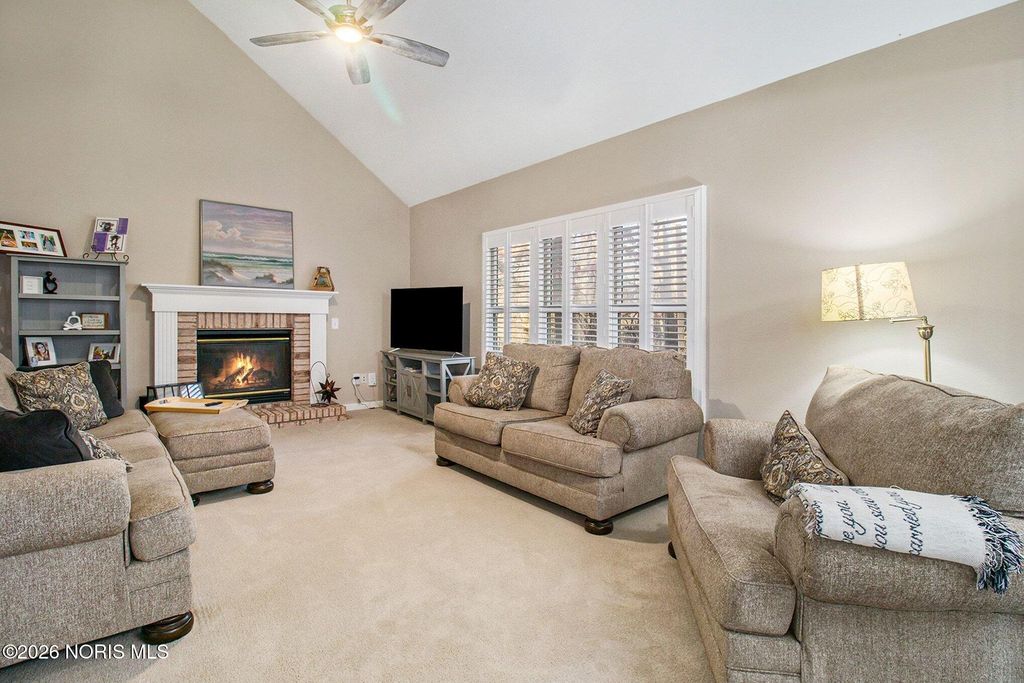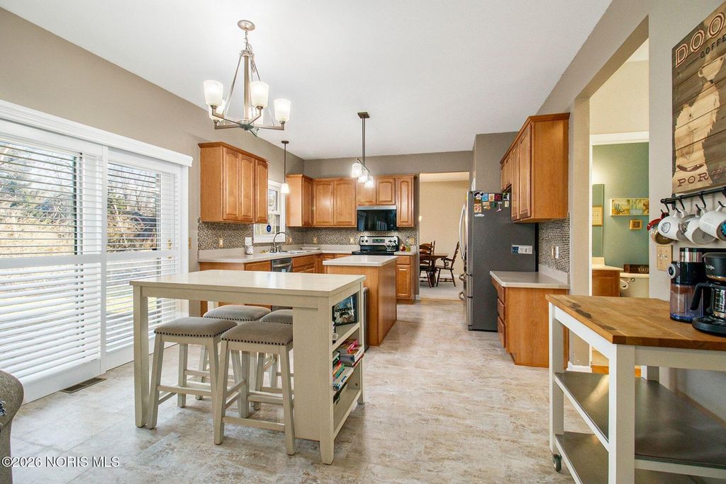 Welcome to an inviting 4-bedroom, 2.5-bath home with a great layout designed for both everyday living and entertaining. The spacious floor plan offers comfortable flow throughout the main living areas, while the basement provides valuable additional space for storage or recreation. Main floor laundry room also for ease. Spacious kitchen with island, stainless steel appliances, and updated flooring. Kitchen opens up to an eat in kitchen area and family room with gas fireplace. Upstairs you will find spacious bedrooms, one being a primary suite with a tub/shower combo, dual sinks, and walk in closet. New fixtures, fresh paint, and flooring in bathrooms to give an updated look as well as most rooms being newly painted! Beautiful custom shutters on the main floor. Step outside to enjoy a backyard lined with trees, creating a peaceful, private setting perfect for relaxing around the firepit or reading a book on the back patio. Irrigation system throughout yard! Home warranty included. This is a well-balanced home that combines space and functionality.