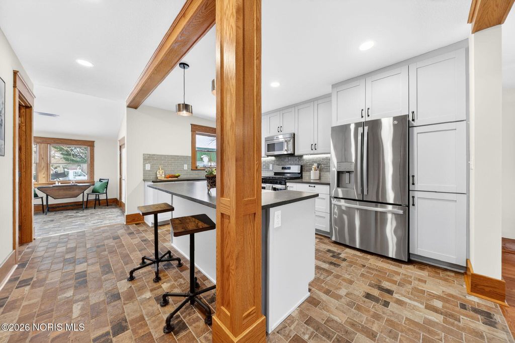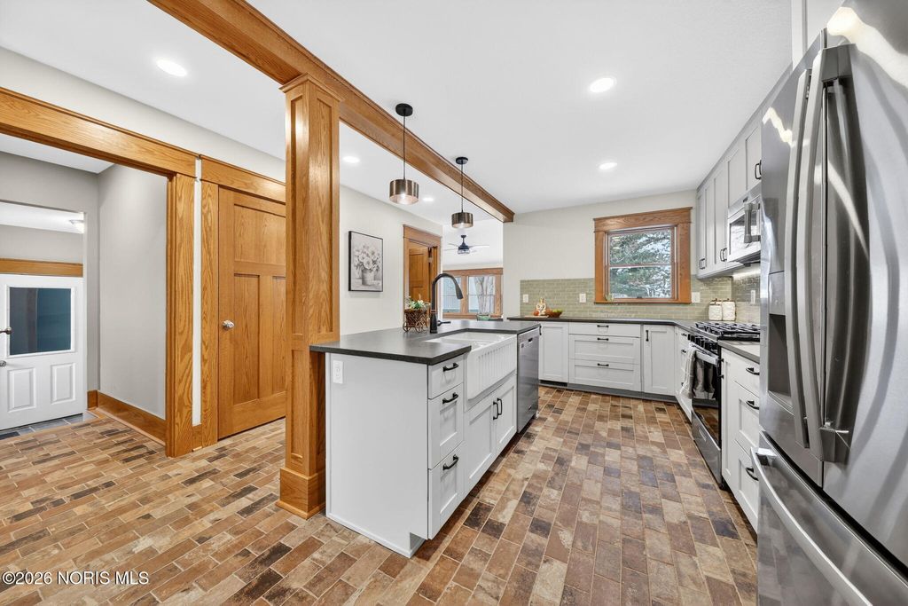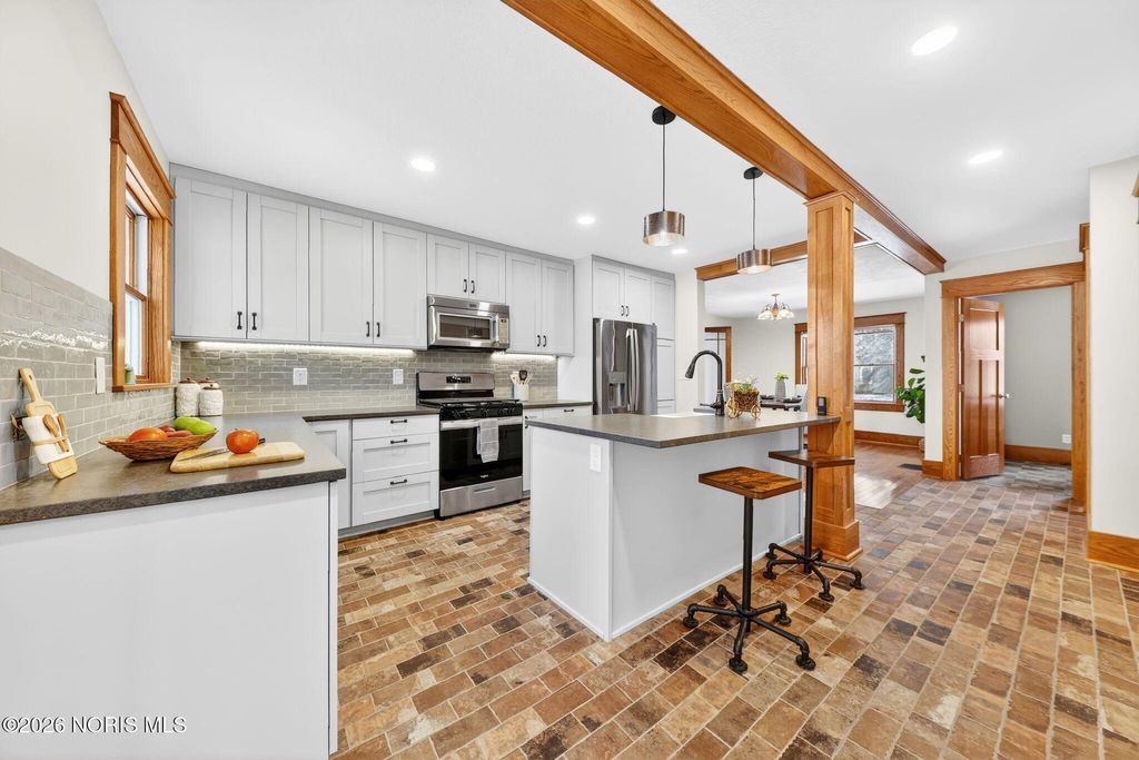 This beautifully updated home has been thoughtfully renovated to preserve its original charm while bringing it seamlessly into today's lifestyle. From the moment you arrive, the curb appeal draws you in "” a striking exterior framed by mature trees and classic detailing that hints at the warmth waiting inside. Step through the door and you'll find light-filled living spaces, rich natural wood trim, and a layout that flows effortlessly for everyday living and entertaining. The kitchen has been completely refreshed with modern cabinetry, stainless steel appliances, and stylish finishes, all while honoring the home's original character. Warm brick flooring, updated lighting, and fresh neutral tones create a perfect balance of old and new throughout. Relax in the inviting living areas, host gatherings in the cozy dining spaces, and enjoy the convenience of both an attached garage and a detached workshop "” ideal for hobbies, storage, or your next big project. This is the kind of home that feels good the moment you walk in "” lovingly maintained, thoughtfully updated, and ready for its next chapter.