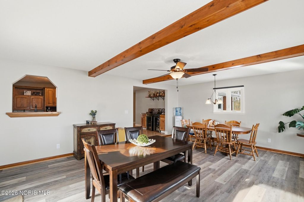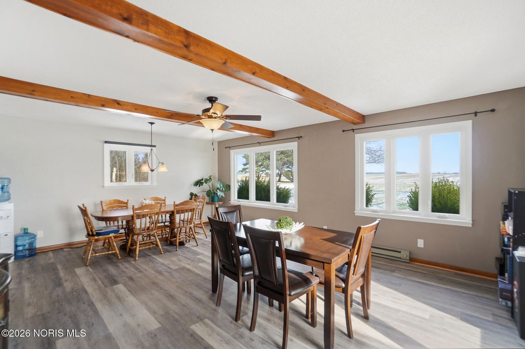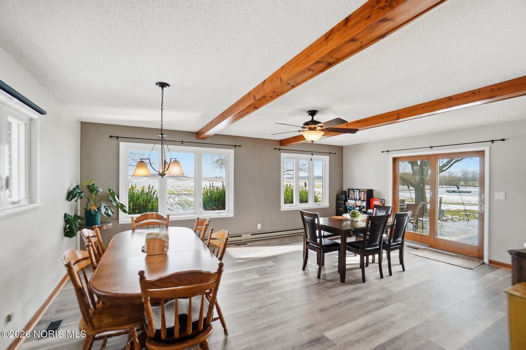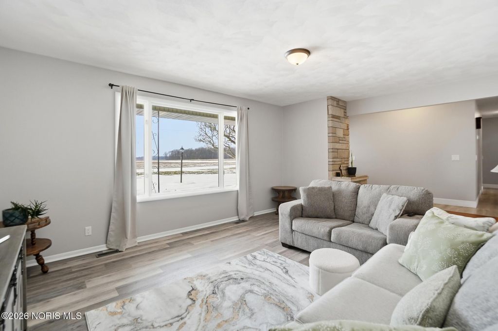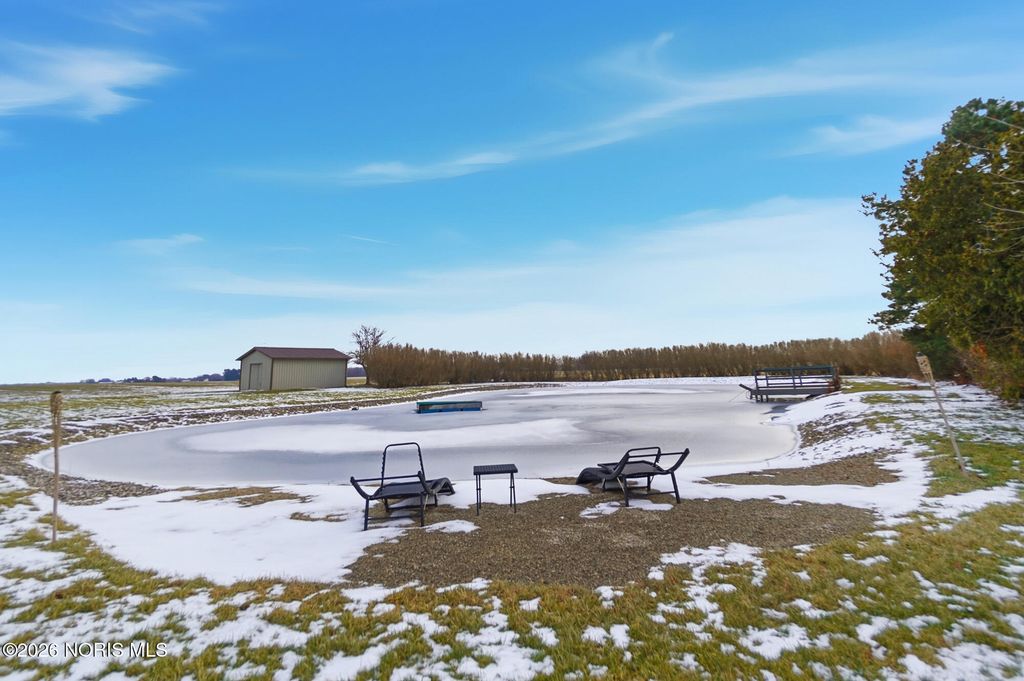 This charming 3-bedroom brick ranch is perfectly situated on over 3.5 acres, offering an open setting with mature trees and picturesque views. Step inside to a spacious kitchen featuring hickory cabinets and stainless steel appliances-ideal for everyday living and entertaining. All three generously sized bedrooms offer brand-new carpet and ample closet space, while new LVP flooring enhances both the living and family rooms. The expansive living room is filled with natural light and highlighted by beautiful wood beam accents, creating a welcoming space to relax and take in the surrounding scenery. Outside, enjoy a stunning, oversized pond complete with a stationary dock, floating dock, aerator, and abundant of fish-perfect for peaceful afternoons or outdoor recreation. An outbuilding with electric adds versitatility for storage, hobbies, or a workshop. Unwind on the stampede concrete patio and gather around the built-in outdoor fireplace while enjoying your morning coffee or hosting family and friends, all while soaking in the serene beauty of this exceptional property. Recent lot line adjustment includes full ownership of the entire pond. Seller has also completed electrical updates, including improvements to the electrical panel.