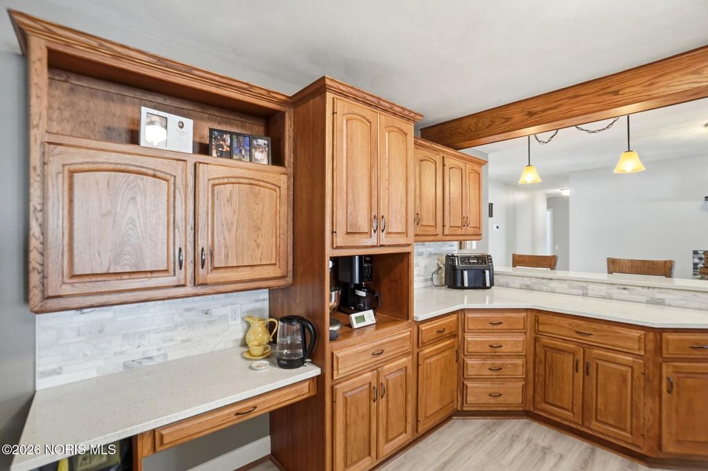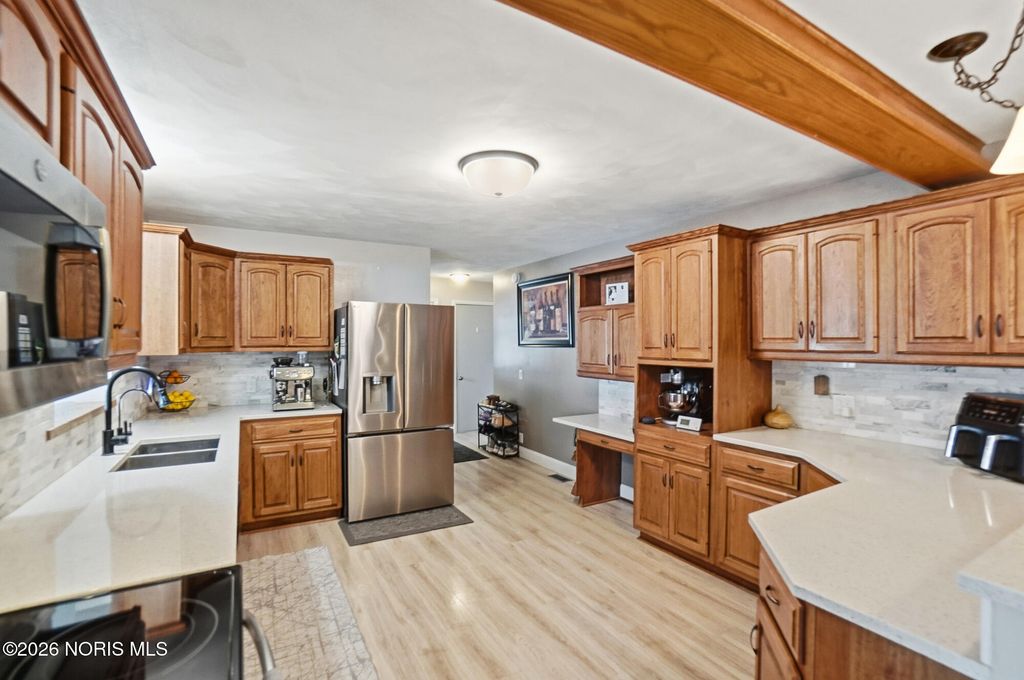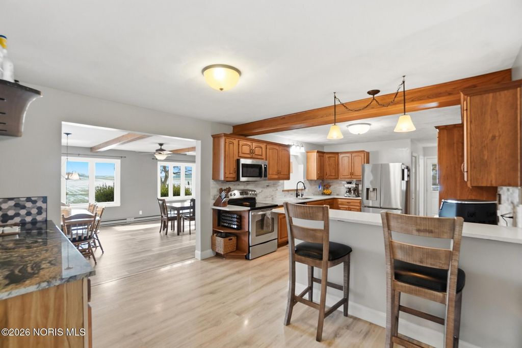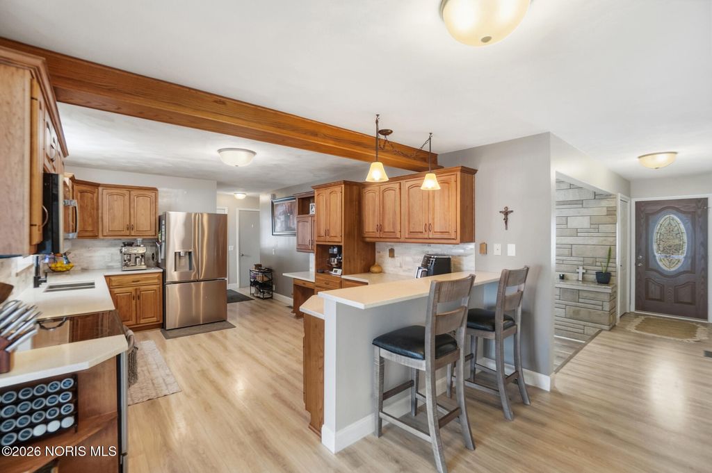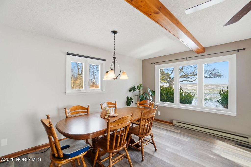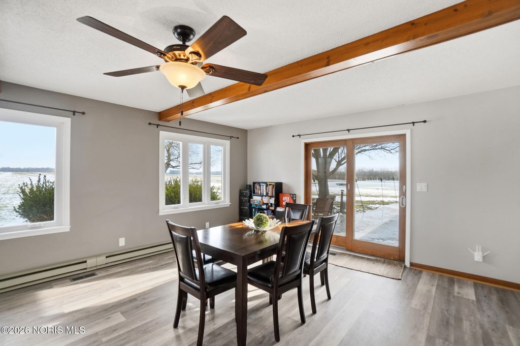 This charming 3-bedroom brick ranch is perfectly situated on over 3.5 acres, offering an open setting with mature trees and picturesque views. Step inside to a spacious kitchen featuring hickory cabinets and stainless steel appliances-ideal for everyday living and entertaining. All three generously sized bedrooms offer brand-new carpet and ample closet space, while new LVP flooring enhances both the living and family rooms. The expansive living room is filled with natural light and highlighted by beautiful wood beam accents, creating a welcoming space to relax and take in the surrounding scenery. Outside, enjoy a stunning, oversized pond complete with a stationary dock, floating dock, aerator, and abundant of fish-perfect for peaceful afternoons or outdoor recreation. An outbuilding with electric adds versitatility for storage, hobbies, or a workshop. Unwind on the stampede concrete patio and gather around the built-in outdoor fireplace while enjoying your morning coffee or hosting family and friends, all while soaking in the serene beauty of this exceptional property. Recent lot line adjustment includes full ownership of the entire pond. Seller has also completed electrical updates, including improvements to the electrical panel.