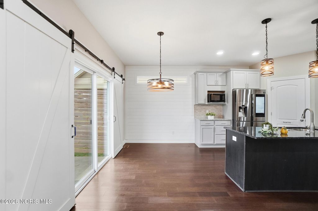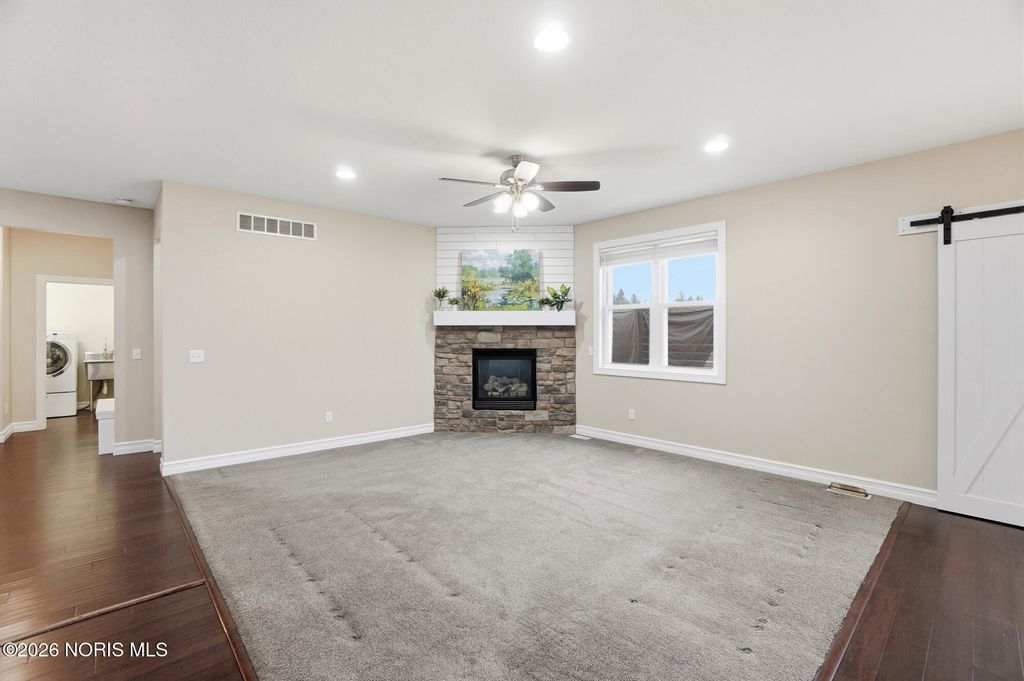 NO SECOND LOOK NEEDED! Live the life you love in this wonderful open concept main floor living home. Move-in-ready, possession at close. Located in Wesley Farms, the home features an expanded patio, barn-style doors in the kitchen, radon mitigation system, LED lighting throughout. The large open basement is ready to be finished and is plumbed for a third bathroom. Basement sqft. is estimated. The backyard has easy access to the Wabash Trail.