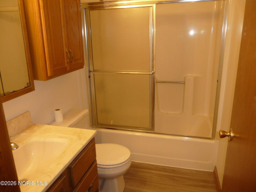 This 1,052 square foot condo has 2 bedrooms and one and one half baths. It has a large kitchen with an abundance of oak cabinetry and extra lighting. The range, refrigerator, microwave, dishwasher, stacking washer and dryer are included. The stacking washer and dryer was installed in July 2025 and new flooring in the bathroom in December 2025. The living room, dining room and kitchen were painted in December 2025. There are ceiling fans in the kitchen and bedrooms. The seller has removed existing carpet and pad and seller will provide a $5,000 credit at closing toward buyer's choice of new flooring. This is a very desirable condo as it has a sunroom, a covered patio, and an end unit with the additional parking right at the end of the unit. There is a beautiful walking trail just outside of the rear door. Pemberville has many community events all year long and Pemberville is a thriving town and Eastwood Schools have an excellent rating. Major highways and the cities of Perrysburg, Bowling Green and Toledo are within a 20-25 minute drive away.