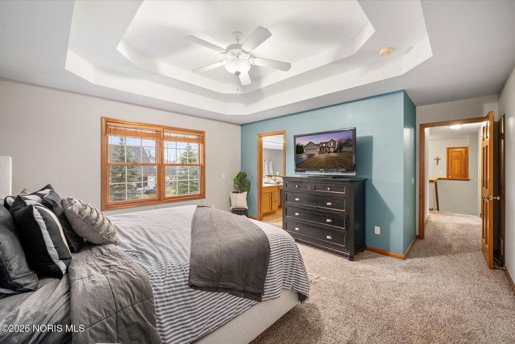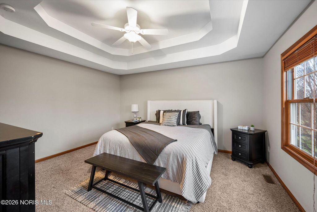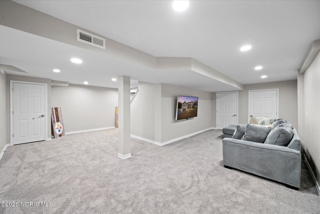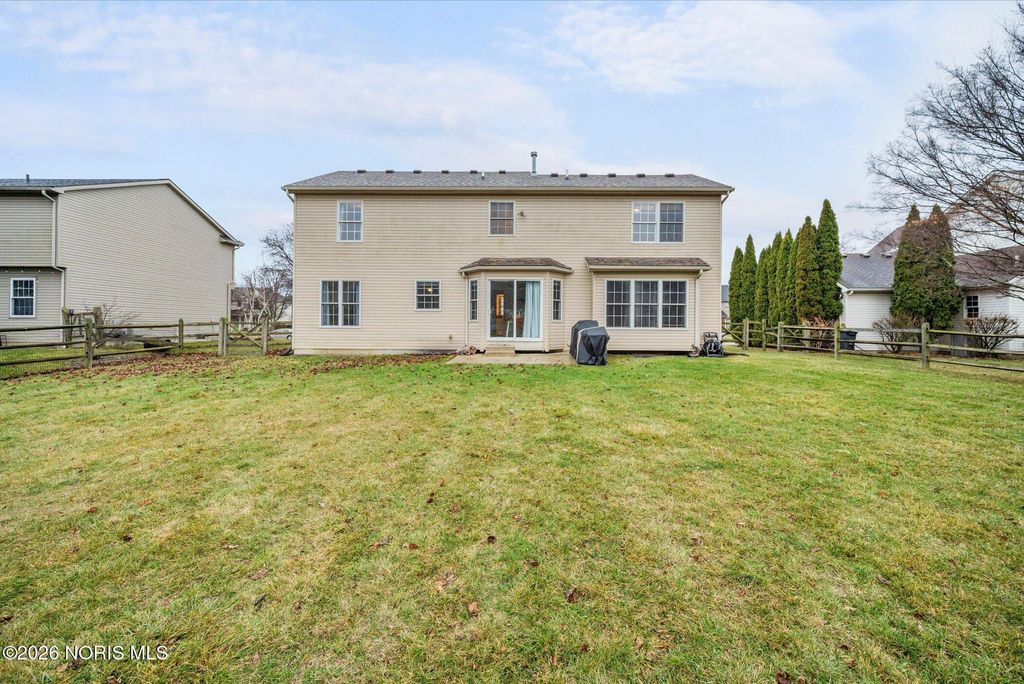This move in ready 4 bed, 2.5 bath home near Perrysburg High School offers space, updates and a finished basement perfect for living and entertaining. The open floor plan features a family room with gas fireplace and an eat-in kitchen with stainless steel appliances, glass backsplash, and breakfast bar. Upstairs, all bedrooms are generously sized, including a primary suite with tray ceiling, walk-in closet, and private bath. Recent updates include the roof, furnace, A/C, and finished basement. A large fenced backyard, 2 car attached garage, first floor laundry, proximity to schools, highways and Levis Commons complete this exceptional home.