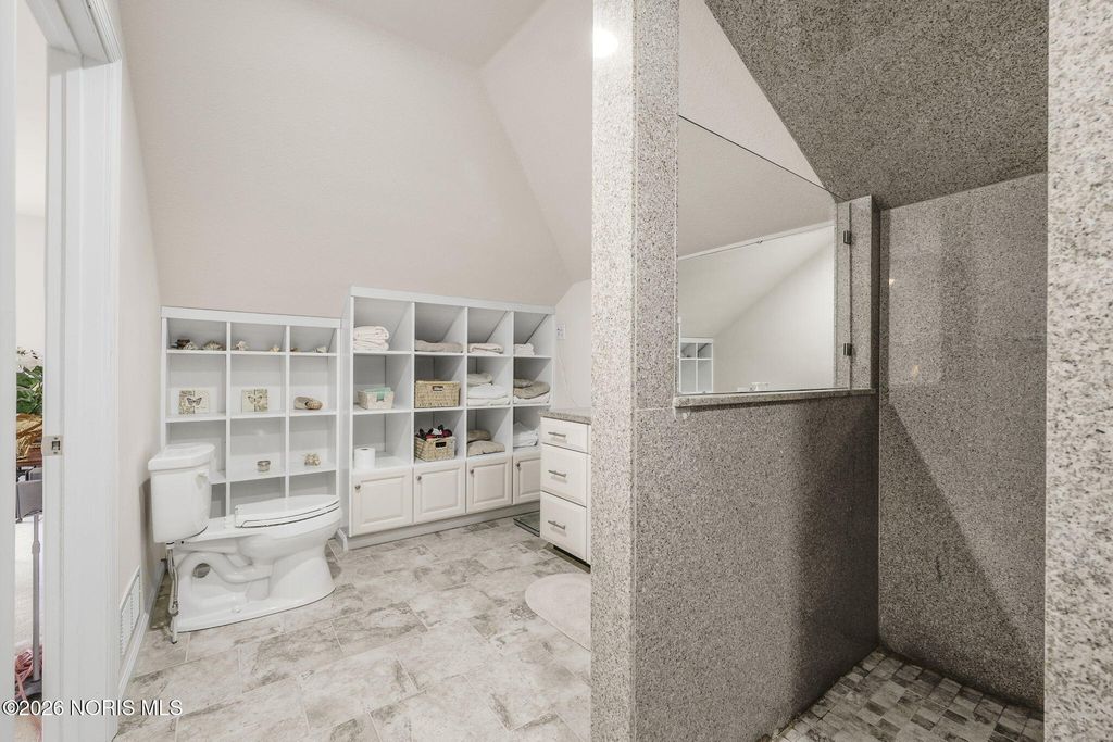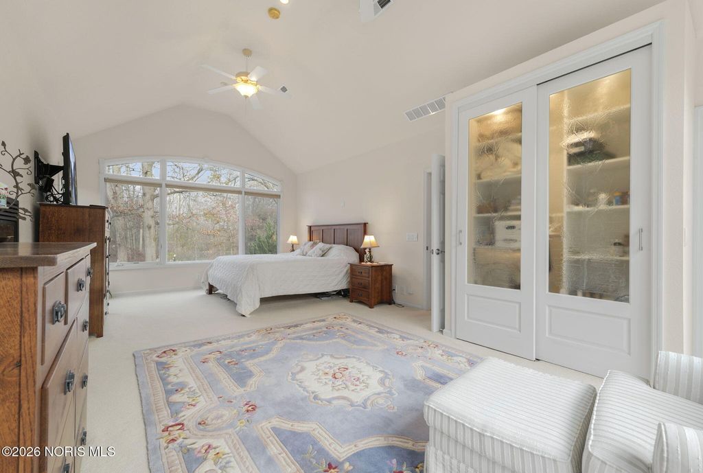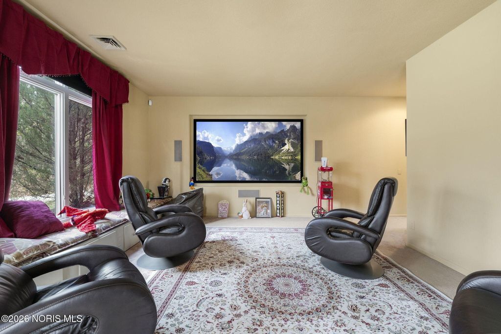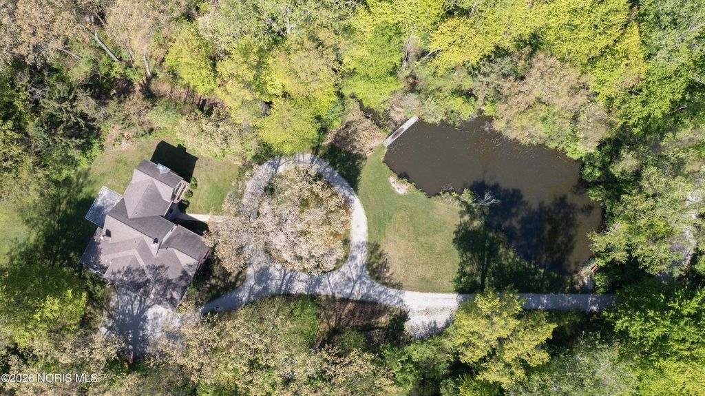 Situated on 5 acres with a scenic pond in the front and a private lake spanning the back of the property, this home offers true lakefront living in a setting that feels both expansive and intentional. The home was thoughtfully designed to capture the views, with large, picturesque windows throughout and floor-to-ceiling sight-lines that bring the outdoors into nearly every room. The backyard centers around the private lake, complete with a beach area and a beautiful paver patio that creates an ideal space for relaxing or entertaining. A walking trail winds through the wooded portion of the property, and a shed provides added storage for outdoor needs. Inside, the layout is equally impressive with two spacious family rooms, a dedicated movie theater, and multiple bedrooms featuring en-suite bathrooms for added comfort and privacy. The primary suite is bright and serene, framed by sweeping views of the water and landscape. A 4-car garage offers ample space for vehicles, storage, and hobbies. With two bodies of water, intentional design, and views that define the living experience, this is a truly one-of-a-kind property offering space, privacy, and a setting that cannot be duplicated.