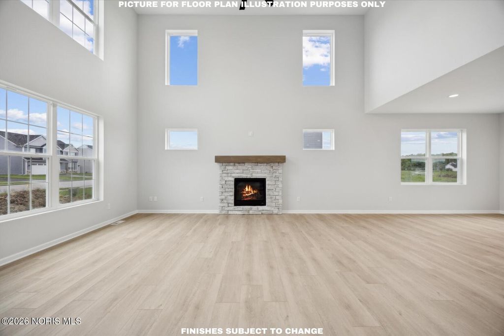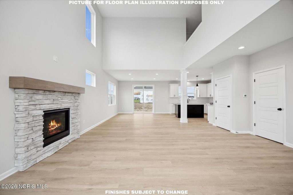 This brand new Milan Plan built by Buckeye features a two-story grand foyer and living room with a cozy fireplace and massive windows on every wall, offering incredible natural light and a second-floor overlook. The first floor includes a private mother-in-law suite, perfect for guests. The owner's suite boasts a glass-enclosed shower & spacious walk-in closet. Enjoy the convenience of a second-floor laundry & 3 full bathrooms throughout. Relax on the covered porch! Pictures are for floor plan illustration purposes only.