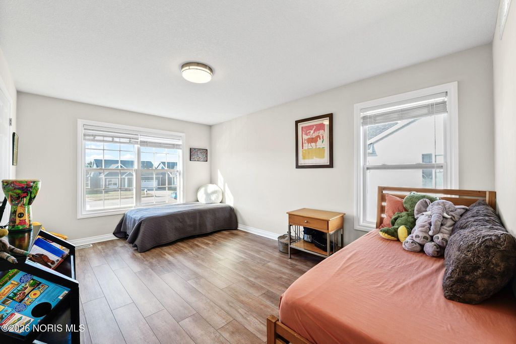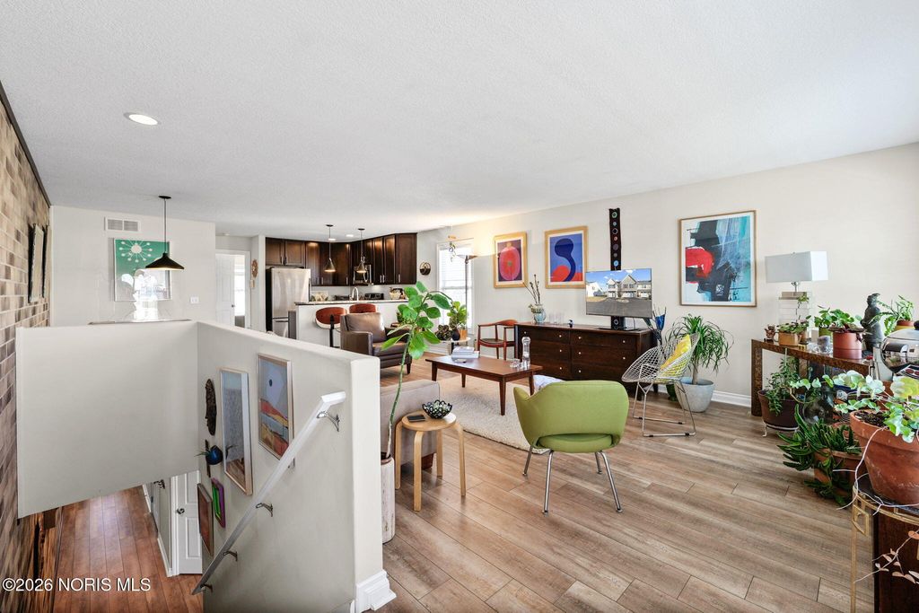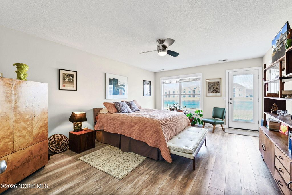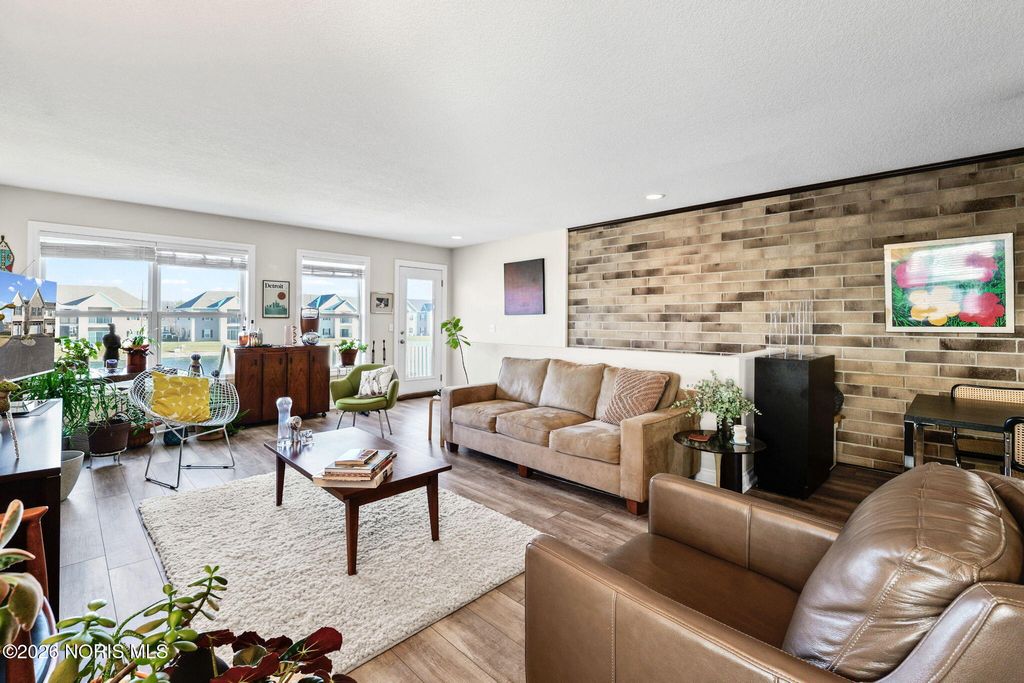 End-unit townhouse featuring a private balcony with serene lake views and just a short walk to the Wabash Cannonball Trail. Enjoy newly installed luxury vinyl plank flooring throughout and an open-concept layout with space for a dining table. The modern kitchen includes stainless steel appliances, granite countertops, and bar seating. Both bedrooms offer ensuite full bathrooms and generous walk-in closets. Additional convenience comes with the attached garage, complete with built-in storage.