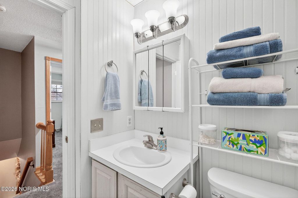 Located just 3 tenths of a mile from the Ottawa River, this 3 bedroom home in Washington Local Schools in desirable Shoreland, boasts two and a half bathrooms and partially finished lower level. With nearly 1,700 square feet, this two story home features both a formal living room and a separate cozy family room with built-ins and warm fireplace. Family room also welcomes you out back to the back patio, perfect for entertaining or relaxing by your sparkling in-ground pool with diving board. Privacy fence and shed are in back to enhance your backyard retreat. Upper level features 3 good sized bedrooms, full guest bathroom and primary en-suite for convenience. The main hallway provides access to lower level, which has a finished area and would make a great rec-room, workout room or even bedroom as is it currently used! Other side of basement is unfinished, providing ample space for storage. Must see this gem! Priced for a quick sale!