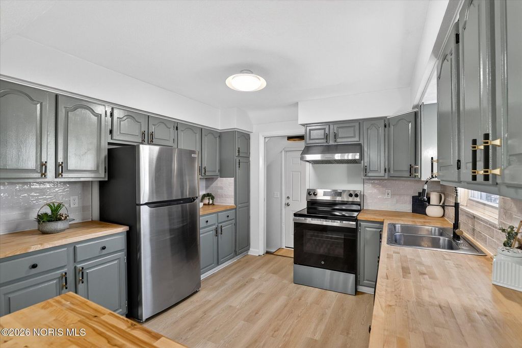 Welcome to this beautifully updated 3 bedroom, 1.5 bath in Toledo's desirable Old Orchard neighborhood. Thoughtfully renovated, this home features a newer roof and HVAC system for year round efficiency and reliability. The remodeled full bathroom boasts a tiled shower and new vanity, while the kitchen shines with a stylish tile backsplash and gleaming stainless steel appliances. New flooring on the main floor for easy maintenance, and plush carpet upstairs and in the finished basement for added comfort. This home is ideally situated just minutes from the University of Toledo, Westgate shopping, and everyday conveniences like Costco and Starbucks.