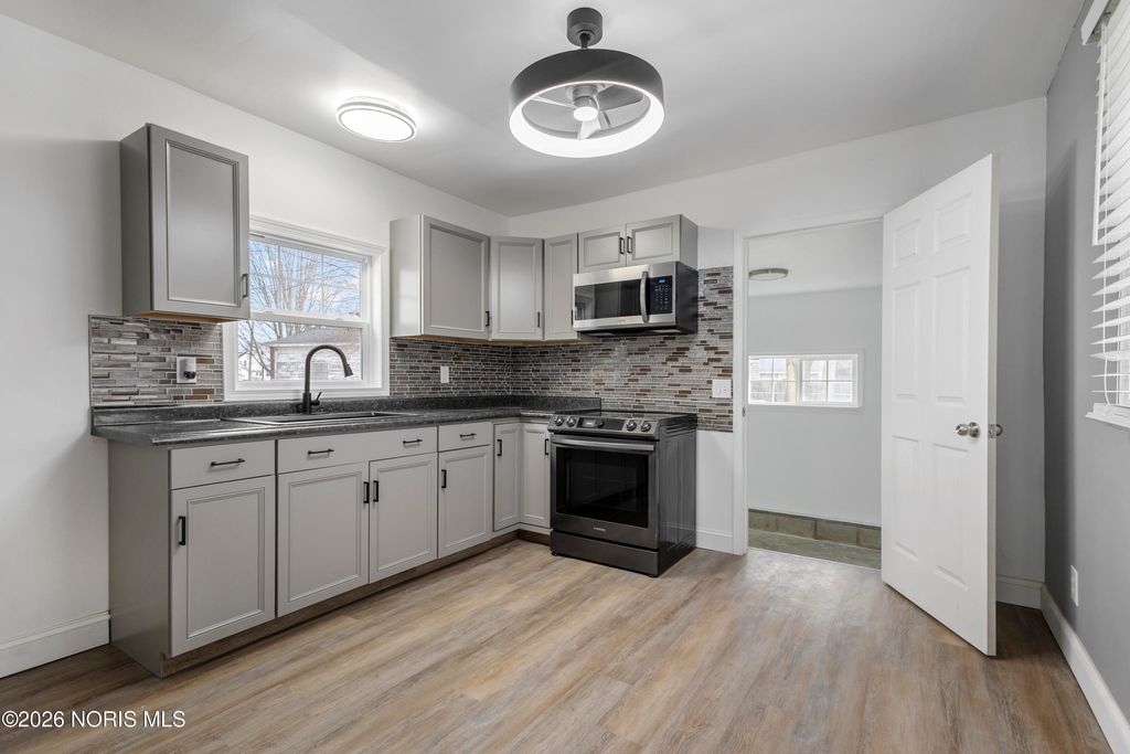 This massive rehab is to a new owner's delight!! Brand new flooring and paint in a cute 2bedroom/1 bath home with a big yard. The home comes with new appliances in your kitchen with a gorgeous backsplash. The modernized bathroom has Bluetooth speakers and adjustable lighting to relax in your new shower. The home has been double insulated to block the heat from escaping and lowering your monthly gas bill. This home comes with a finished laundry room with a washer and dryer hookup. No more having to walk down basement steps!! (AGENT IS REALTED TO SELLERS)