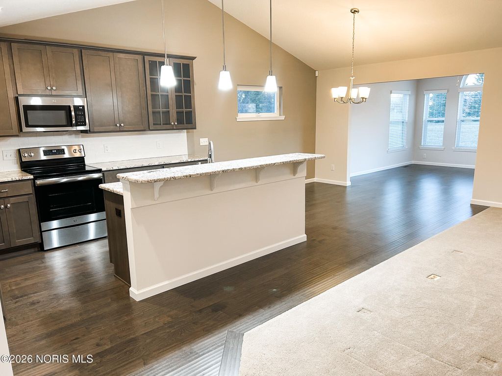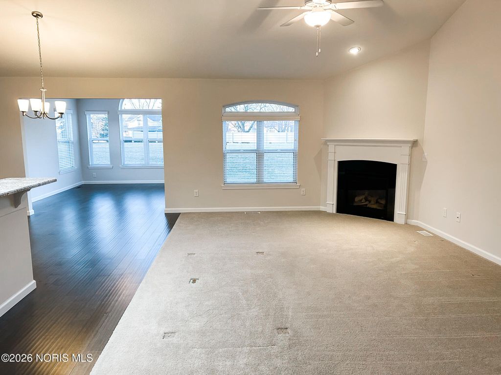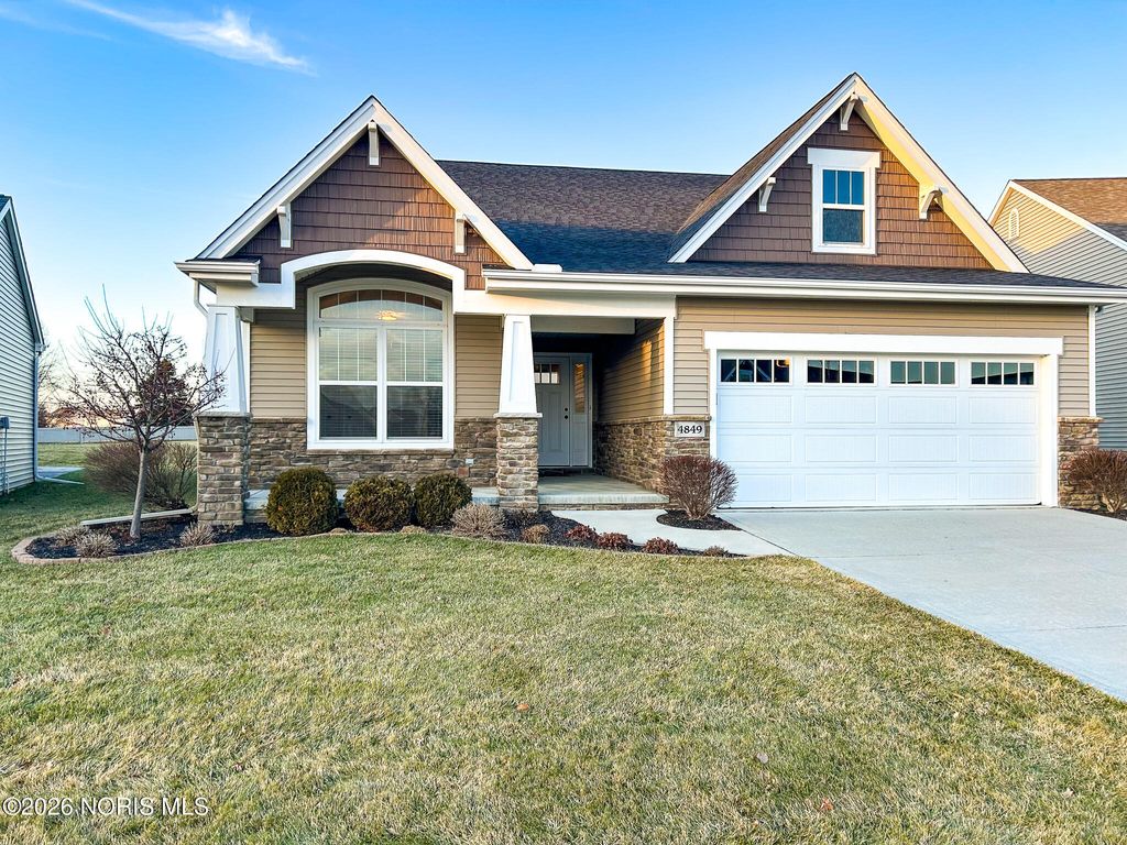 Welcome home to this stunning 1-sty villa located in the coveted Park Place of Sylvania! Upgraded amenities, large basement, vaulted ceilings, corner fireplace, and wood flooring. Island kitchen with snack bar, granite countertops, tiled backsplash, pantry, and stainless appliances! Guest bedroom with vaulted ceiling, eye top window , and hallway to full bathroom for private guest or second owner suite! 3rd bedroom with french doors and closet! Huge primary suite 18 x 13 with regular closet + large walk-in closet and gorgeous bathroom! Grand foyer leading to open floor plan decorated in neutral tones with matte black hardware! Main floor laundry equipped with cabinetry, wash sink, tile floors, and the washer + dryer included! Super rare basement feature for subdivision and rough plumbed for bathroom! Sunroom loaded with windows and glass slider leading to stamped concrete patio and large green space! Resort style community featuring lakes, walking trail, and surrounded by Sylvan Prairie Park! Just foot steps away from private community center featuring heated pool overlooking the lake, fitness center, game room, indoor driving range, and putting green! Association fee includes lawn care, snow removal, and your use of the community center and pool! Clubhouse and pool maybe reserved for private parties and events! Construction started in 2018 and was completed in 2019- still feels new and in pristine condition!
