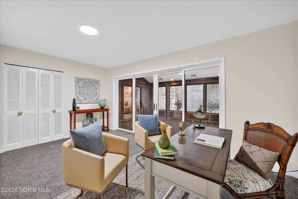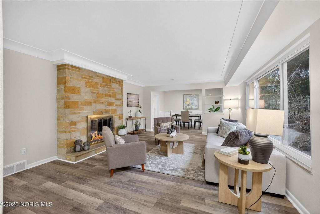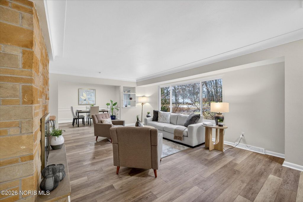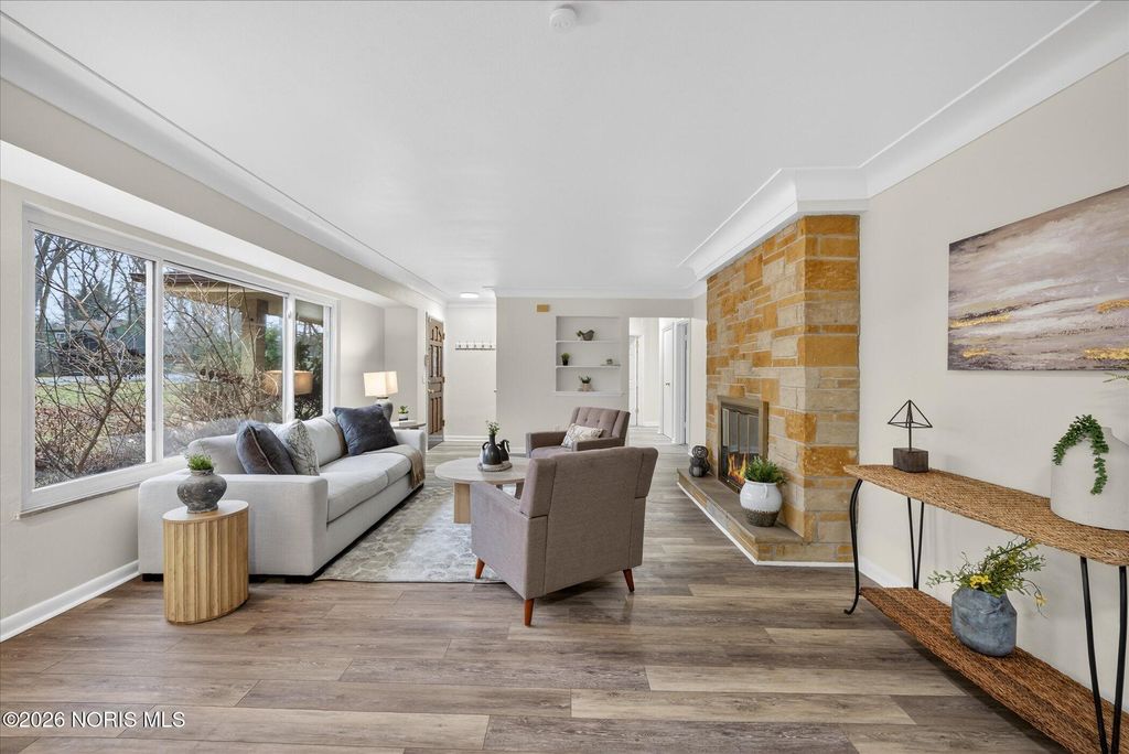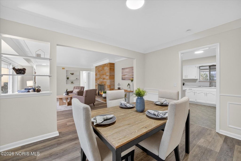 Positioned at the corner of Sylvan Green & Fairway in Sylvania Township, this contemporary one-story ranch offers an exceptional setting surrounded by luxury homes and the unmistakable feel of a country club neighborhood. With approximately 2,173 square feet, the home delivers the scale buyers want in a ranch, generous room sizes, and effortless indoor-outdoor flow. Inside, you'll find fresh Sherwin-Williams paint and new carpet, along with a classic layout featuring formal living and dining rooms and a fireplace anchoring the main gathering space. The kitchen is complemented by a breakfast nook, and a dedicated laundry room adds everyday ease. The bedroom wing is equally impressive: a spacious primary suite with an updated bath offering a large shower, soaking/whirlpool tub, and a seated vanity area, plus two additional oversized bedrooms and a second full bath. What truly sets this home apart is the outdoor living. Enjoy a screened porch/sunroom for three-season relaxation and an expansive covered patio that functions as an open-air extension of the home, ideal for entertaining, dining, or quiet evenings overlooking the fully fenced backyard. The in-ground pool is ready for a refresh, offering an incredible opportunity to create a private resort-style setting in one of Sylvania's most coveted pockets. Appliances stay, and major improvements noted include, A/C, and water heater (2017). A rare chance to secure space, setting, and potential in a location that simply can't be replicated. Keys at closing!